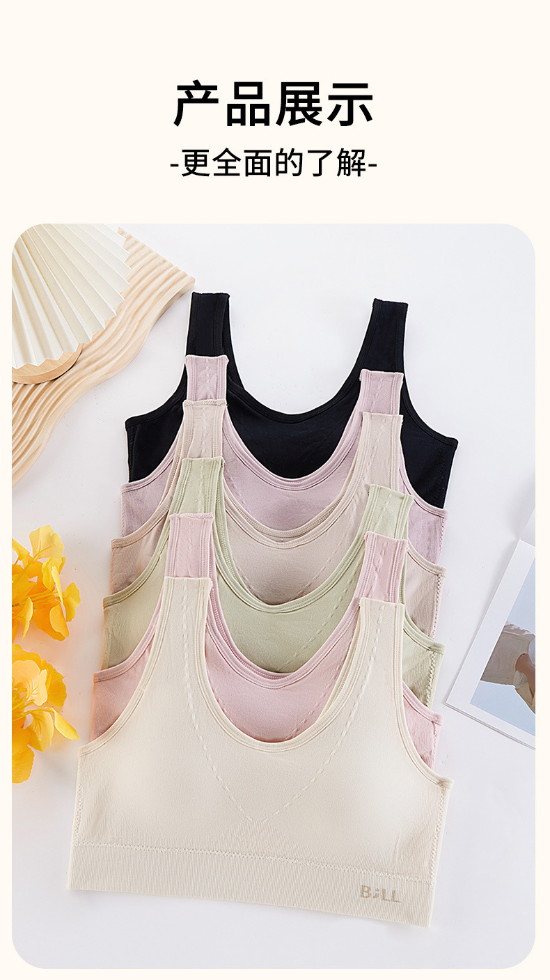 高校生、中学生向けの露出防止ブラジャー、シームレスな美しい背中、胸を包む薄い発育期ベスト下着、通気性のある学生向け