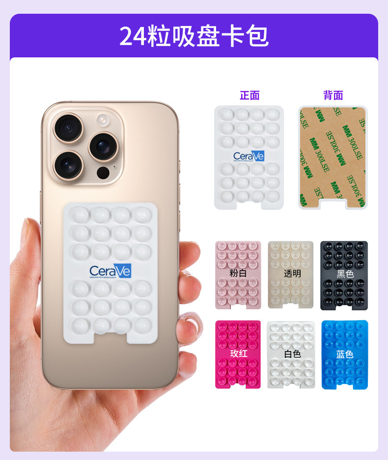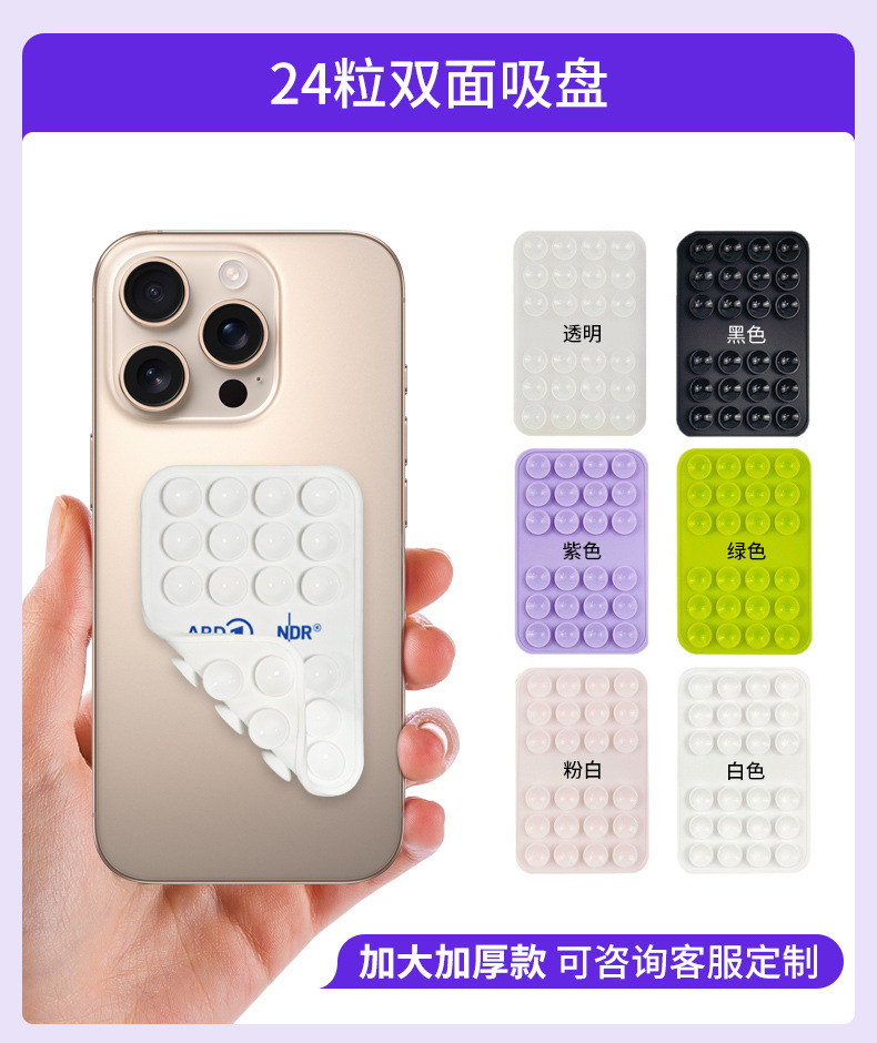 跨境新款24粒双面吸盘卡套硅胶手机贴移动电源吸盘吸盘插卡卡贴