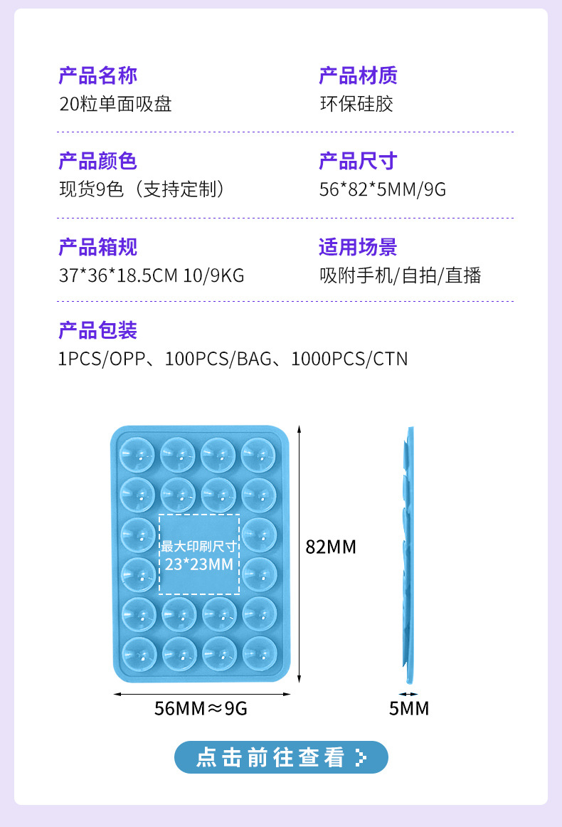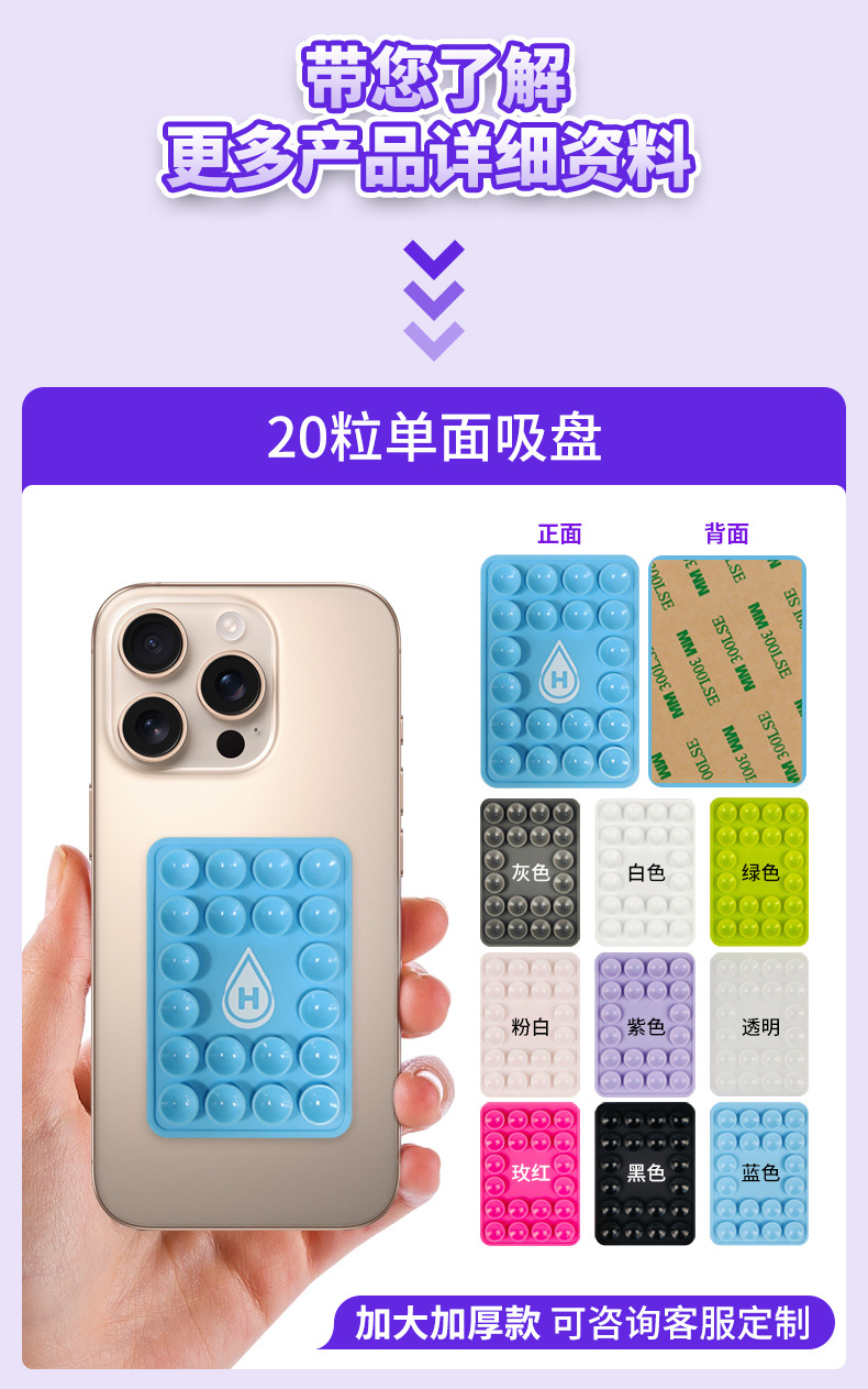 颜色 20粒单面可印刷手机吸盘,升级版20粒单面可印刷手机吸盘,24粒单面可印刷手机吸盘,24粒双面可印刷手机吸盘,升级版24粒双面可印刷手机吸盘,24粒吸盘卡包可印刷手机吸盘,纯硅胶材质20粒磁吸吸盘,硅胶+塑胶20粒磁吸吸盘,升级版硅胶+塑胶20粒磁吸吸盘,30粒双面吸盘,24粒单面吸盘,开模定制款式