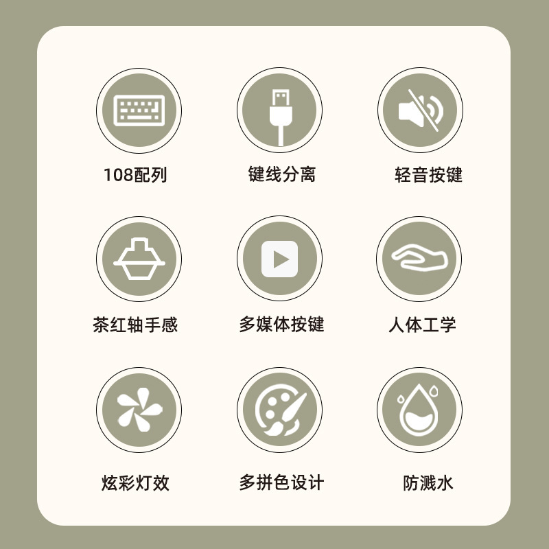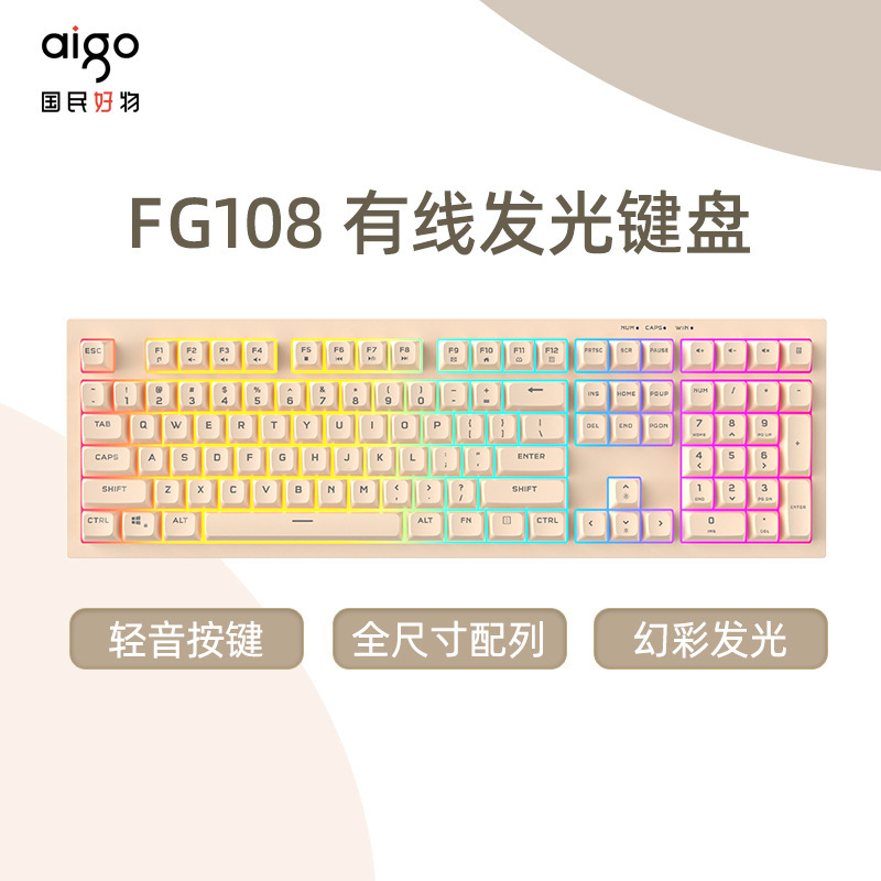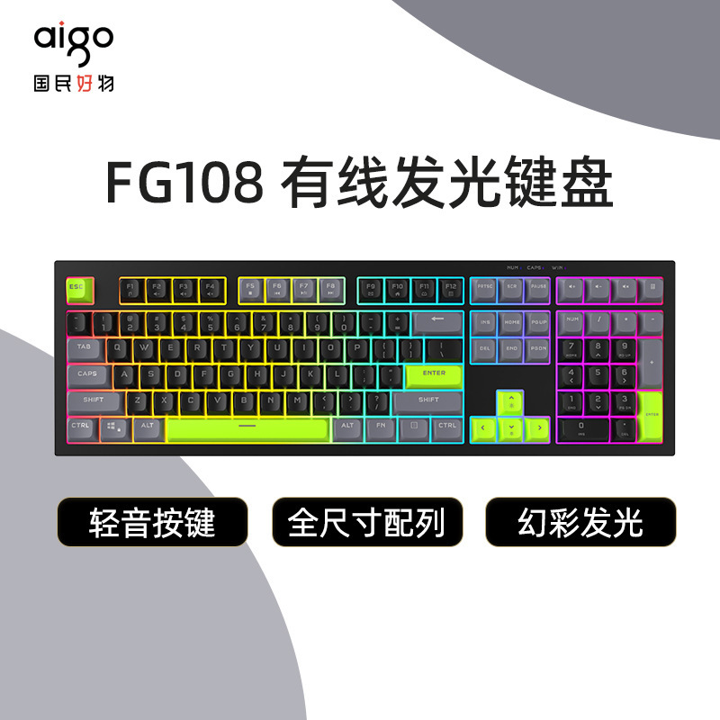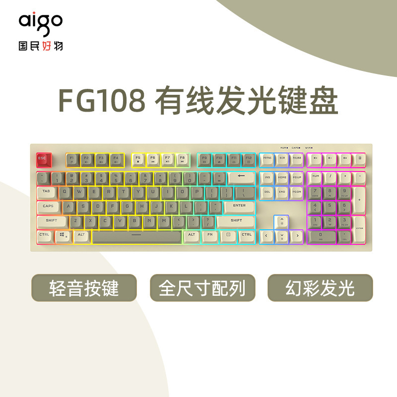 愛国的なFG108フィルム茶赤軸、軽い音のボタン、カラフルな発光有線ゲーミングキーボードに適しています。