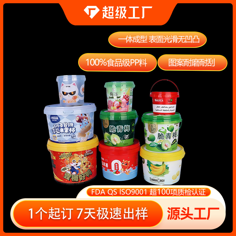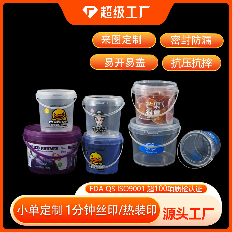 メーカーカラー蓋手提げプラスチック桶0.3-5L透明収納キャンディー玩具桶食品級PP材質カスタマイズ