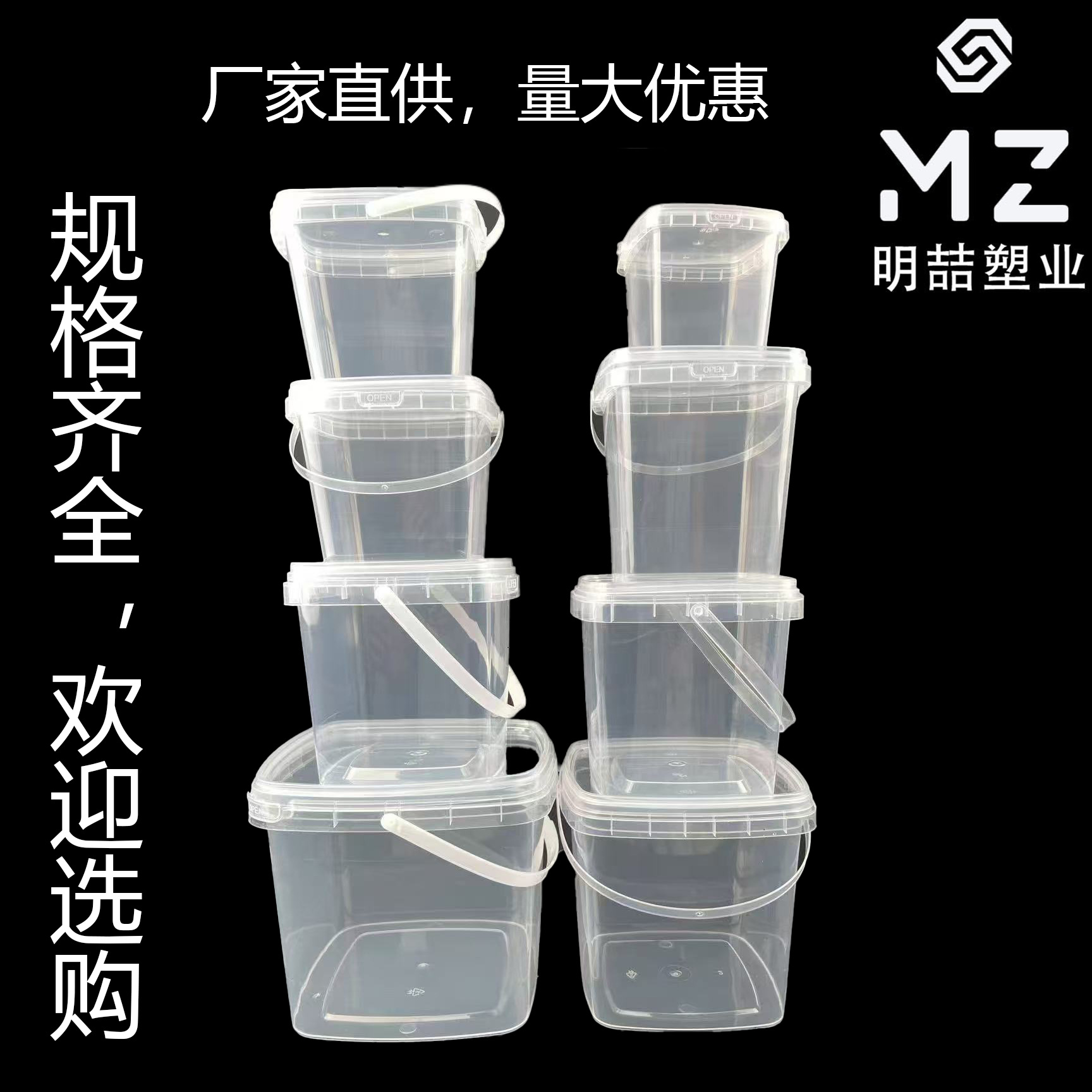 源头工厂食品级加厚带盖密封透明方形手提外卖水果捞海鲜塑料桶