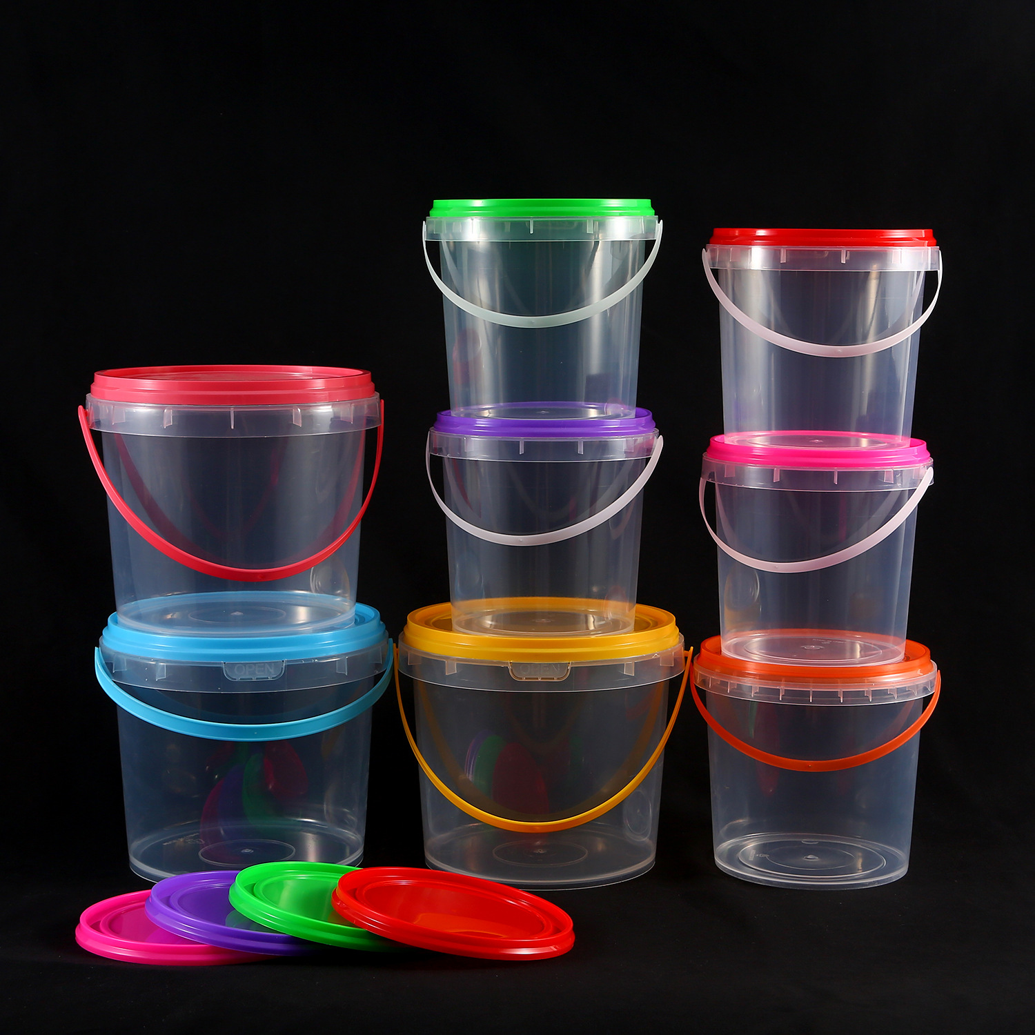 食品級PP密封桶0.3L-5L円形カラー透明収納桶蓋付き手提げ桶メーカーを供給する