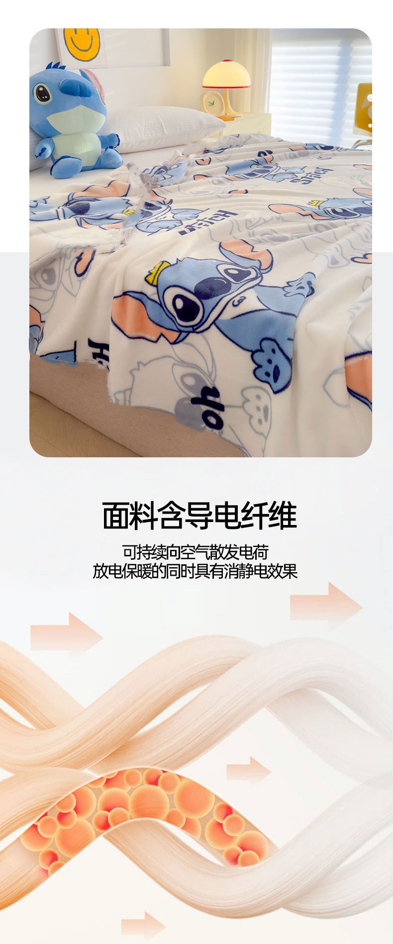 亚马逊史迪奇卡通法兰绒毛毯史迪仔系列双面绒印花双层毯定制