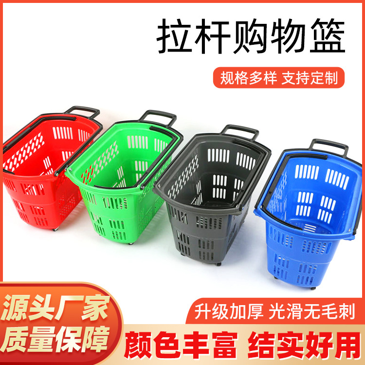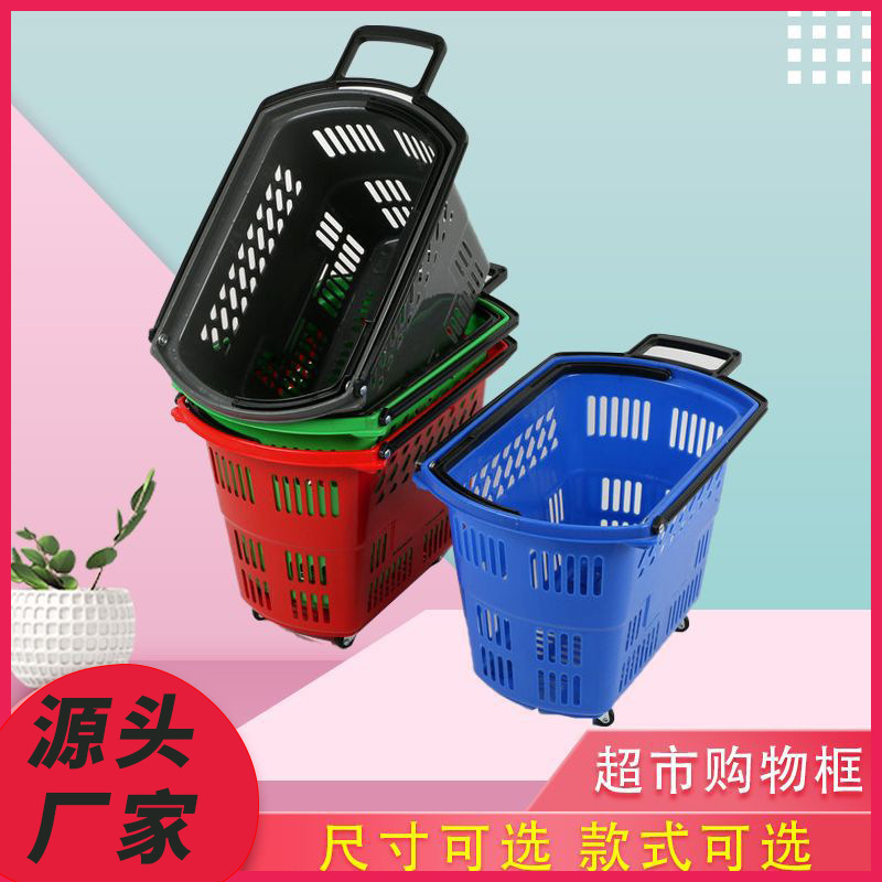 工場卸売スーパーマーケット用トロリー付き買い物かご、スーパーマーケット用プラスチック製フルーツハンドバスケット、買い物カート、汚れた衣類用バスケット、厚手のバスケット
