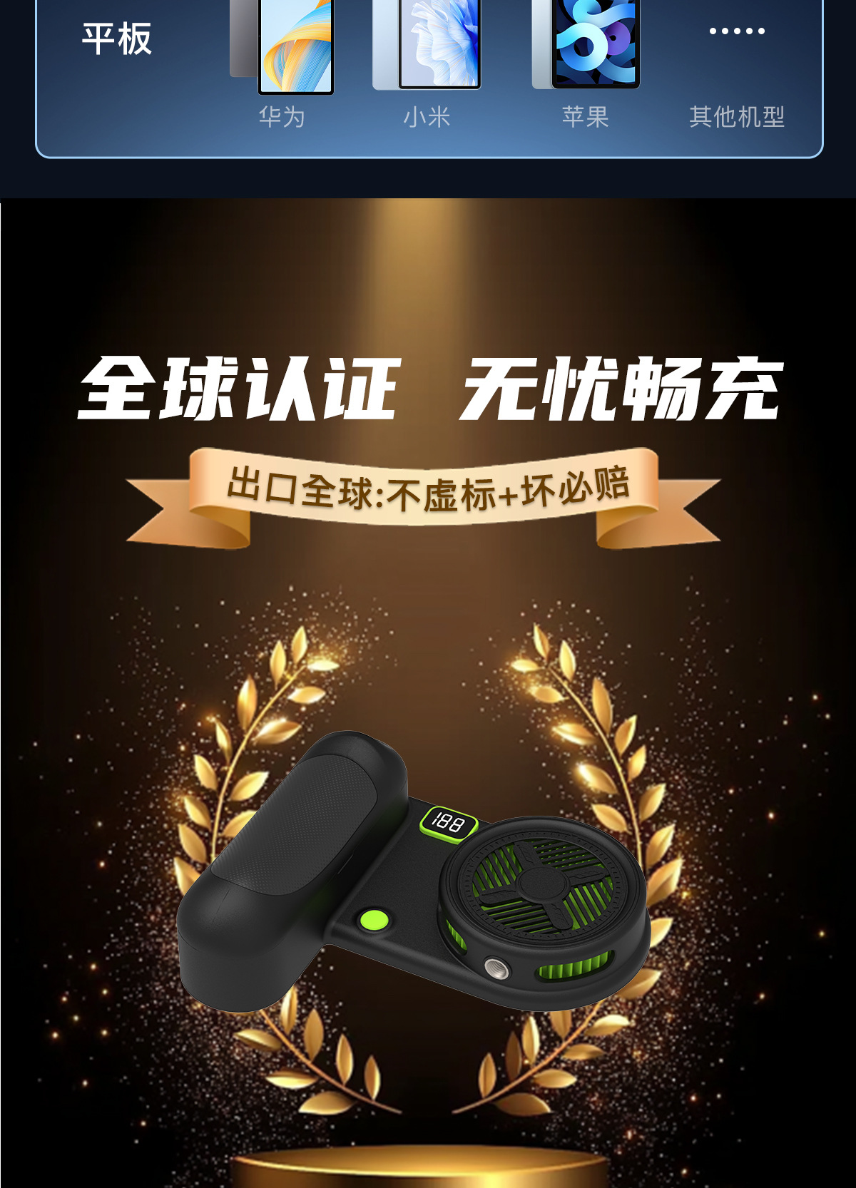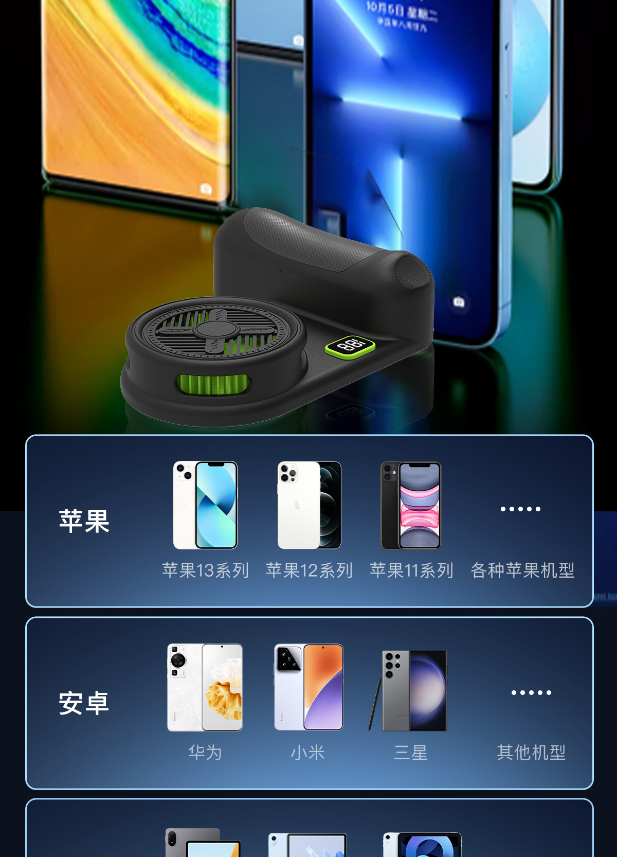 新款手机散热器半导体可结冰充电式数显静音磁吸无线充降温