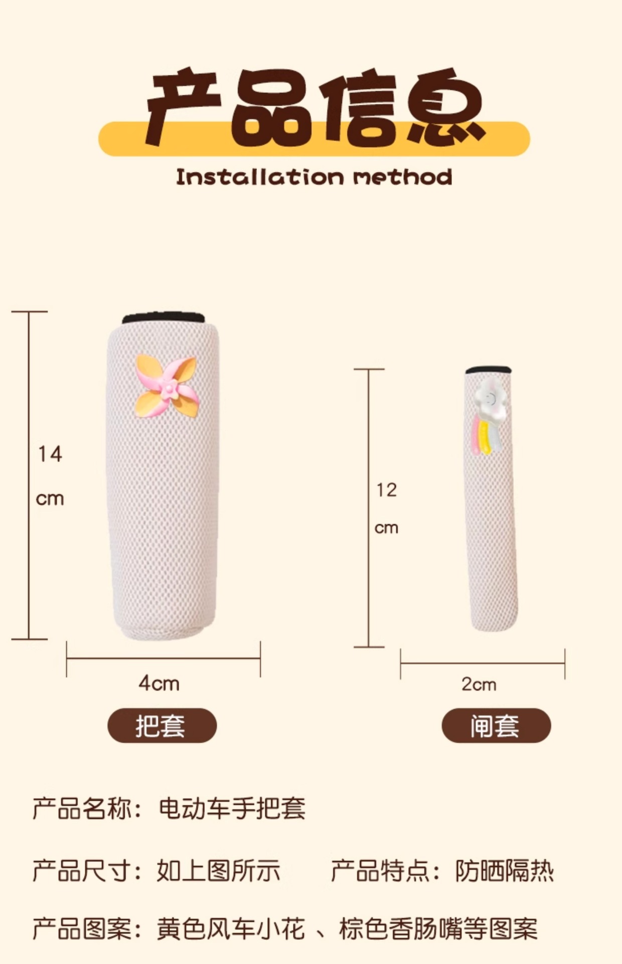 规格 小风车【把套+闸套】一对装,粉色小兔子【把套+闸套】一对装,鸭肠嘴【把套+闸套】一对装,蘑菇头【把套+闸套】一对装,绿狗帕恰【把套+闸套】一对装,紫色小兔子【把套+闸套】一对装