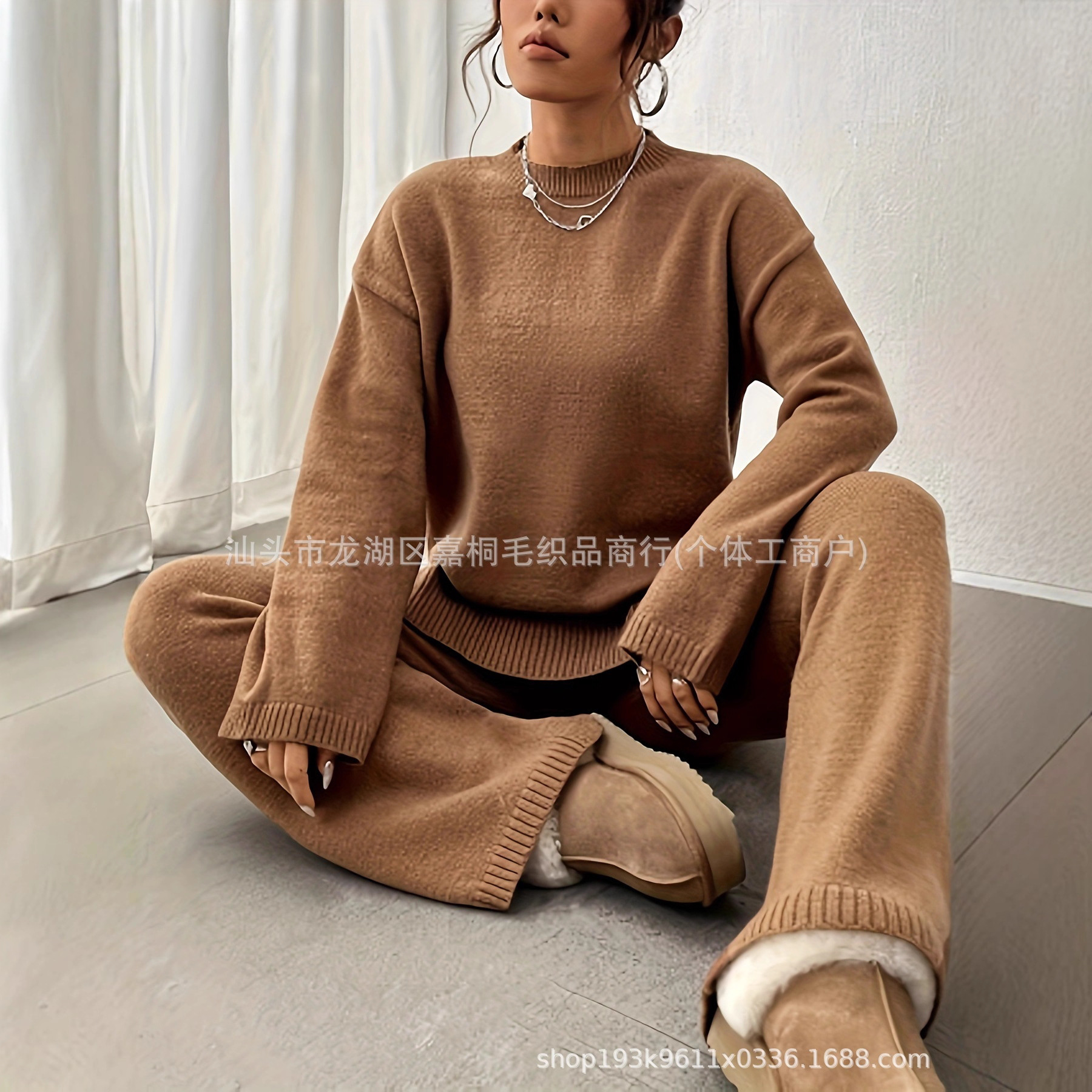 秋冬新款热销女休闲时尚圆领撞色高级气质毛衣针织毛织两件套