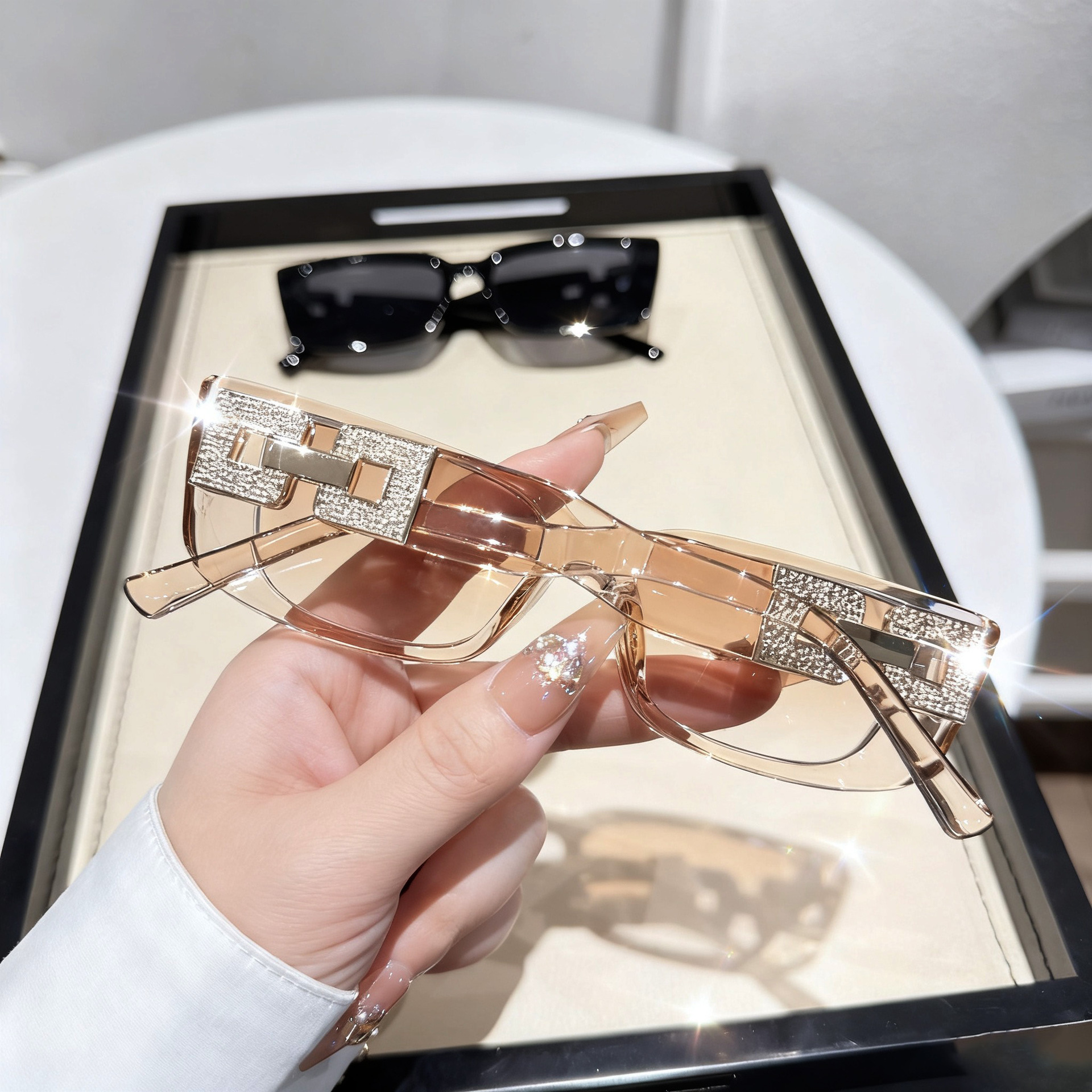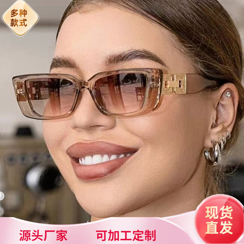 ヨーロッパとアメリカのクロスボーダーファッションダイヤモンドチェーンフィートレディースサングラス長方形スモールフレームサングラスキャットウォークモダンストリートフォトサングラス