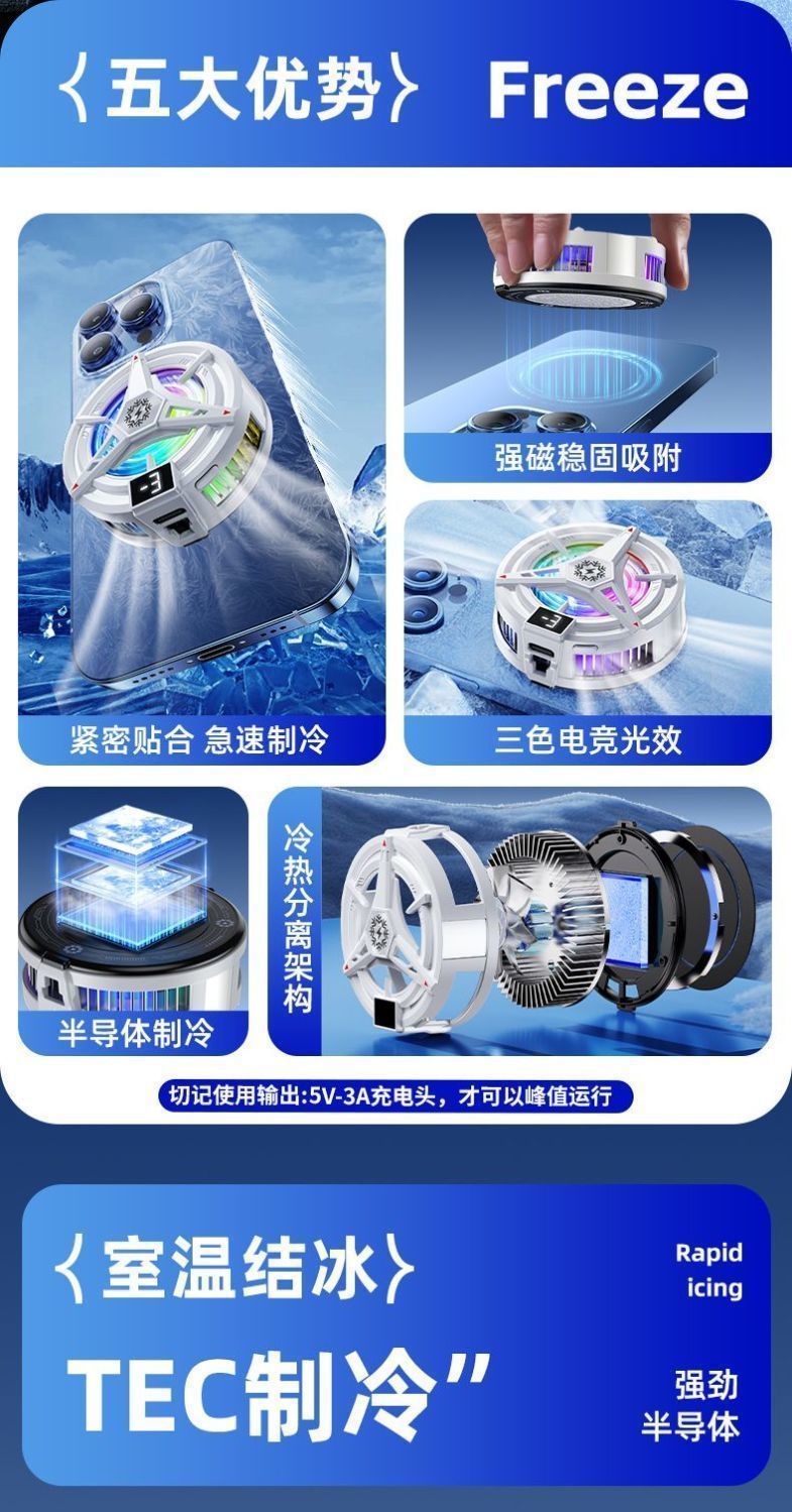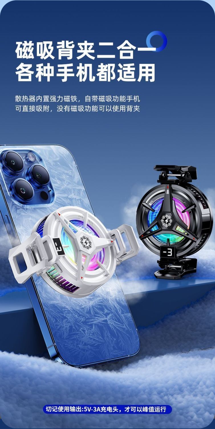 携帯電話クーラー氷化デジタルディスプレイ磁気バッククリップオン半導体冷凍ゲームエサリーゲームライブブロードキャストアーティファクト