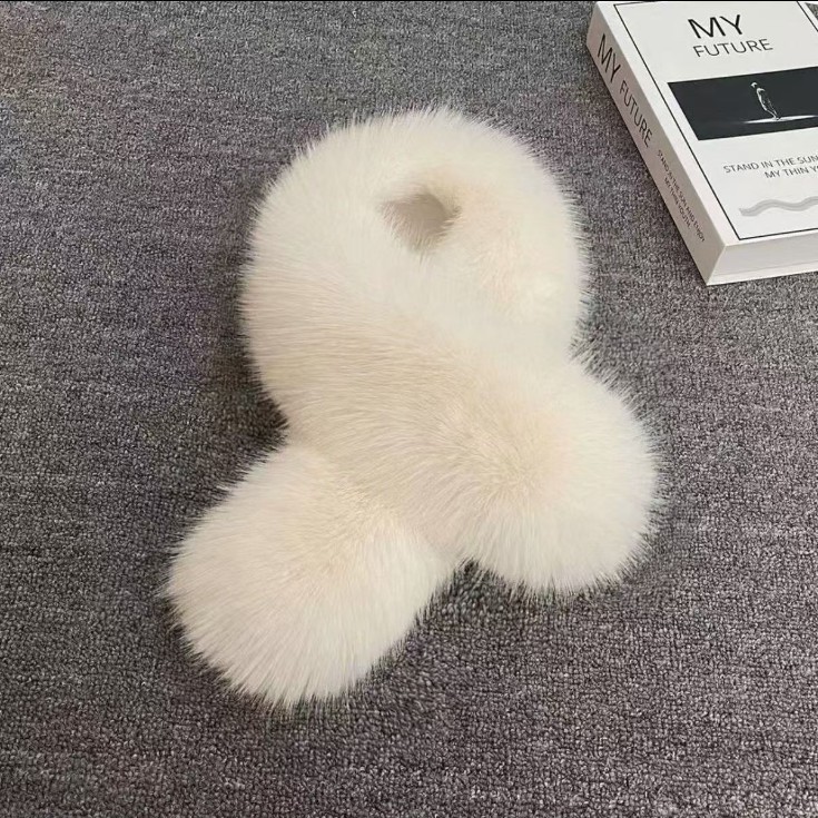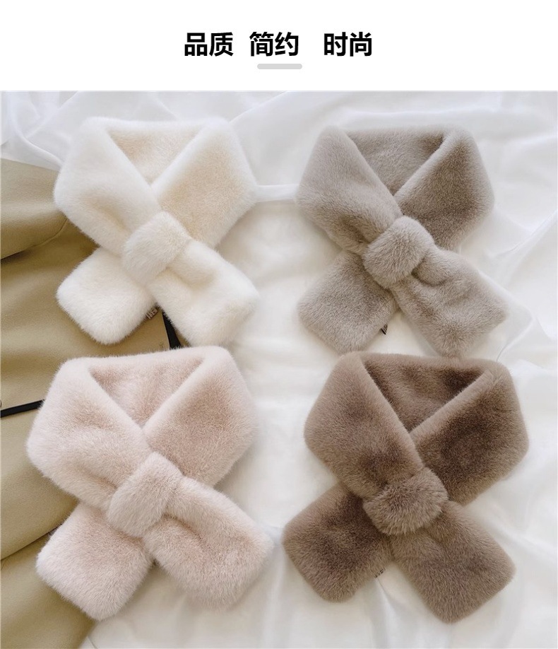 纯色毛绒围巾冬季护颈围脖韩版可爱毛毛绒仿獭兔学生加厚保暖交叉