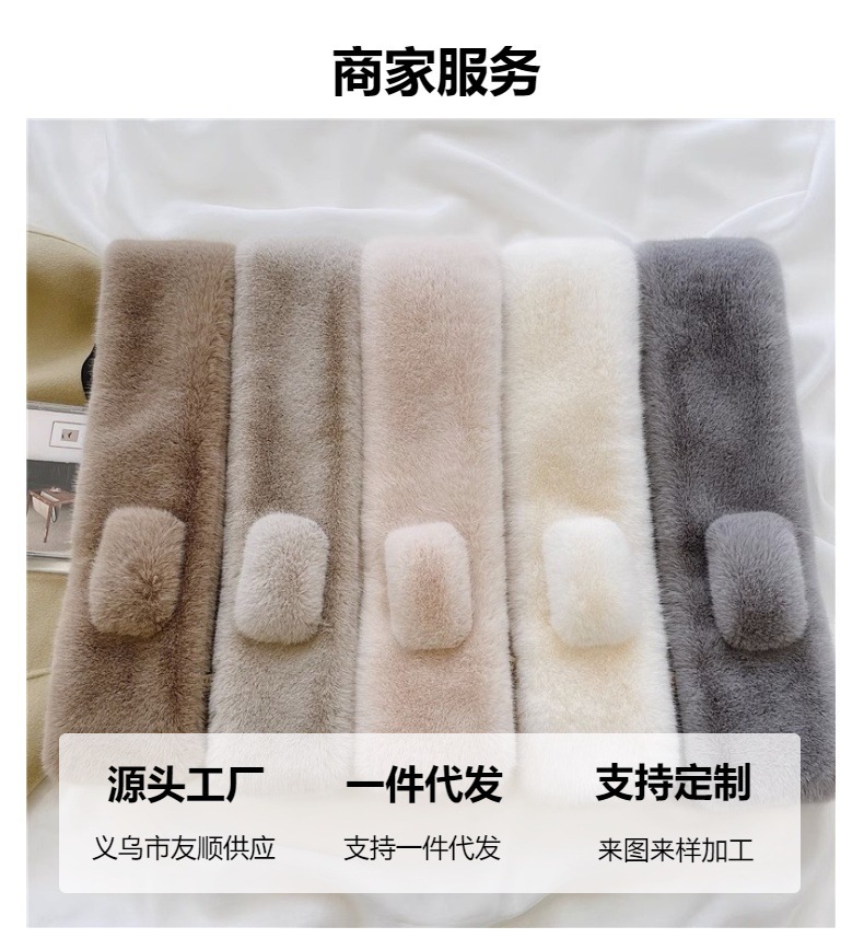 新品毛绒围巾女仿獭兔毛内衬秋冬季韩版百搭皮草围脖仿獭兔毛时尚