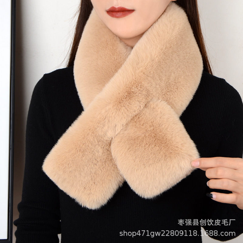韓国風シックな厚手無地ファー襟付きネックウォーマー、暖かいイミテーションラビットファークロススカーフ、豪華なファー襟、女性向けおしゃれ