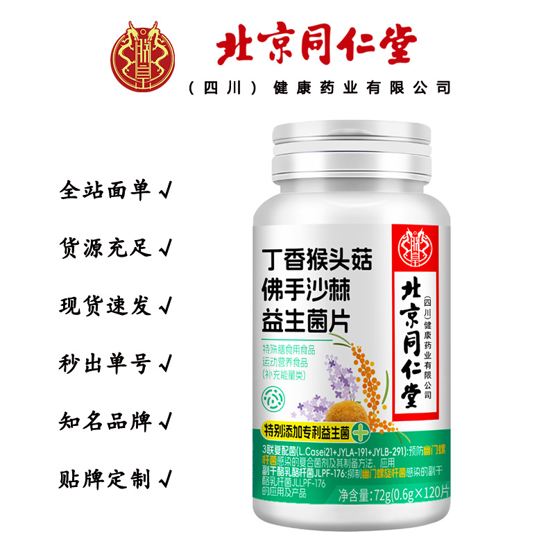 北京同仁堂 朕皇 丁香猴头菇山药沙棘益生菌片 72g/瓶一件代发