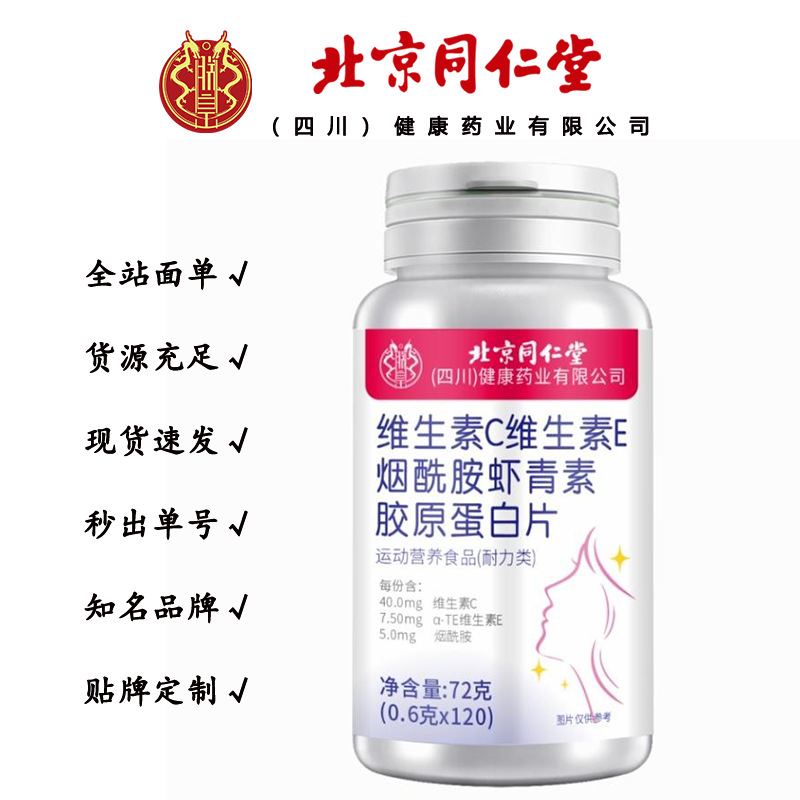 北京同仁堂朕皇维生素C维生素E烟酰胺虾青素胶原蛋白片72一件代发