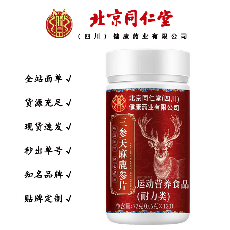 北京同仁堂朕皇三参天麻鹿参片 72克/瓶一件代发