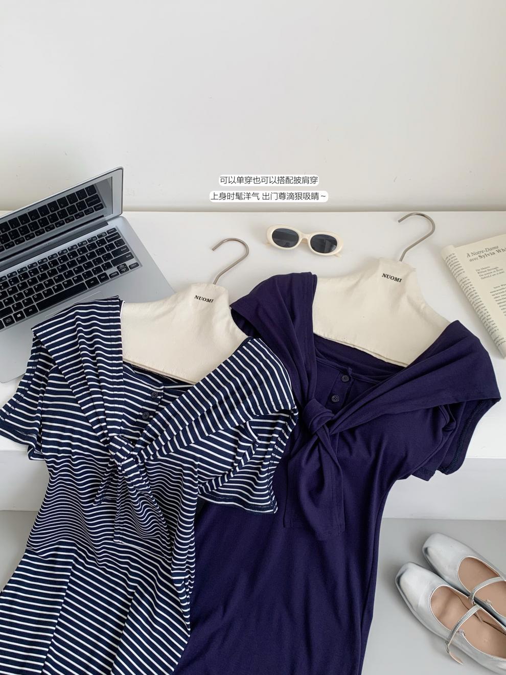 リアルショットコントラストカラーストライプ内蔵胸パッドサスペンダードレスショール女性用2025夏新韓国スタイル痩身ヒップスーツ