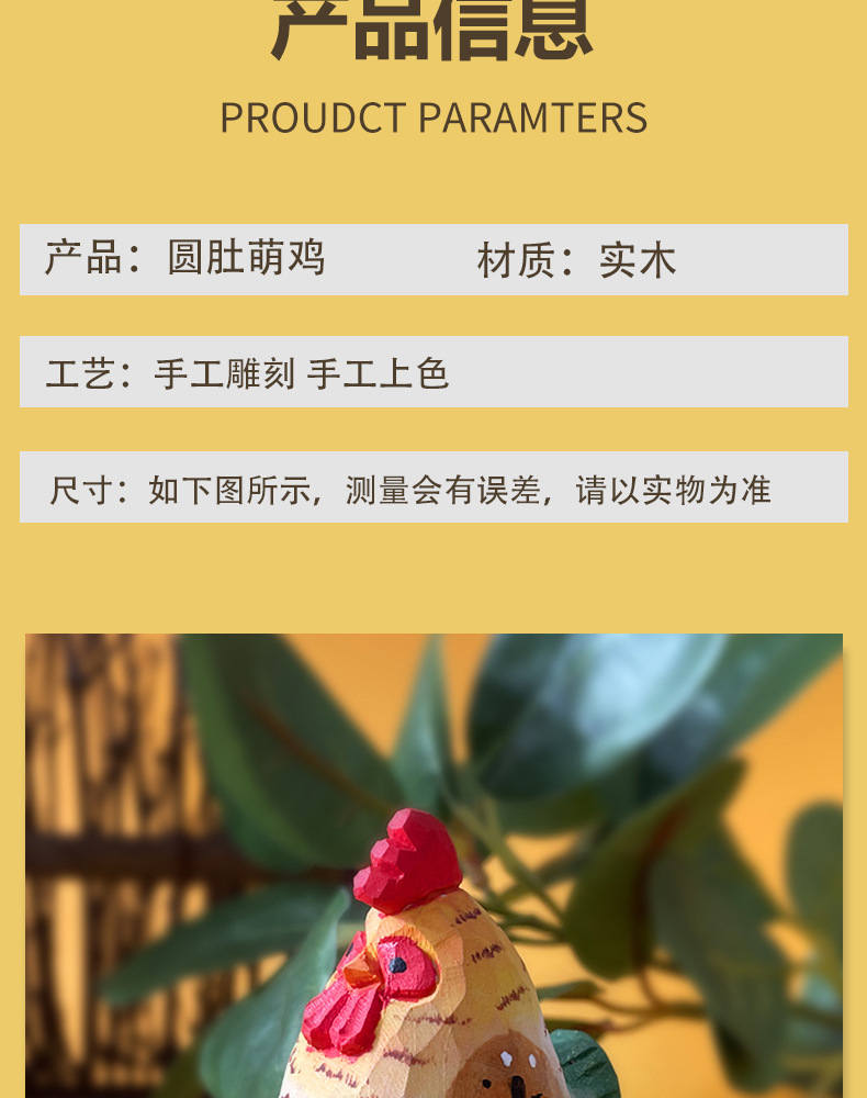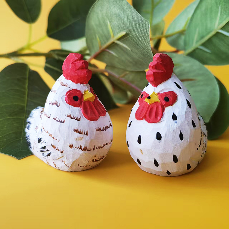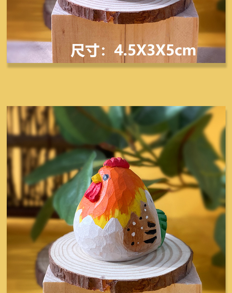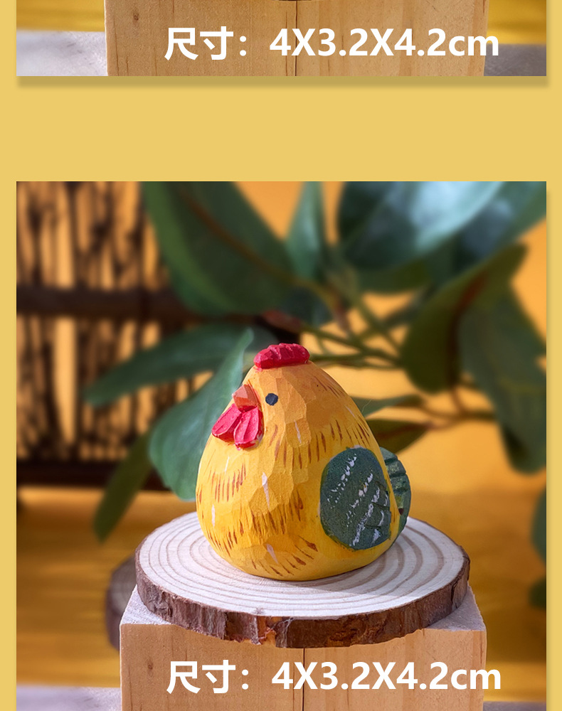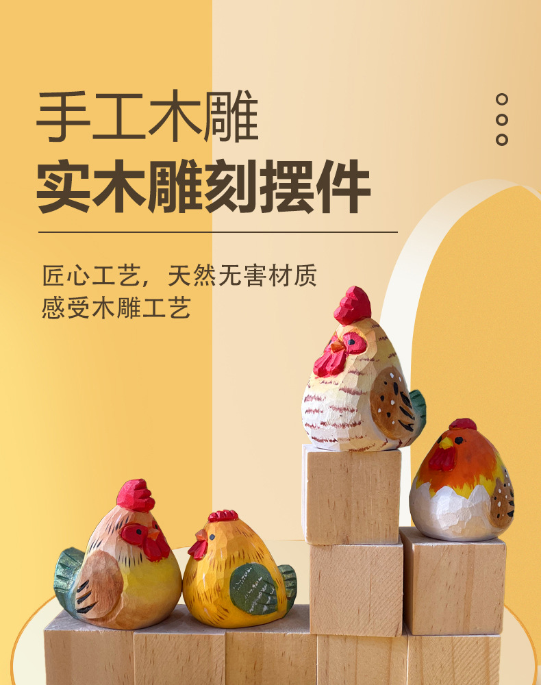 木雕摆件小萌鸡实木手工雕刻可爱呆萌小鸡木质工艺品桌面汽车装饰