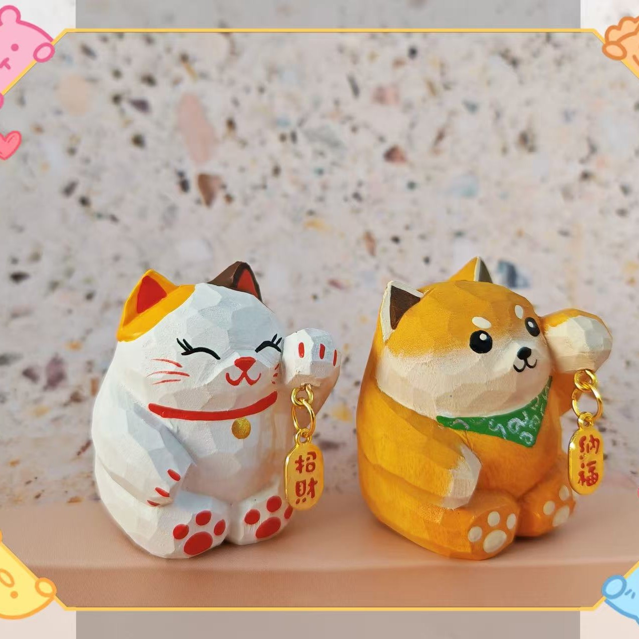 萌えペット木彫り純粋な手作りの実木彫刻オフィスのリビングルームのデスクトップの小さい置物のかわいい風の創意的な家庭の贈り物