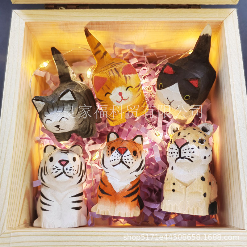 かわいい木の彫刻の卸売りの猫のトラの豹の公仔の事務室のデスクトップのアイデアは件の実木の彫刻の贈り物を並べます。