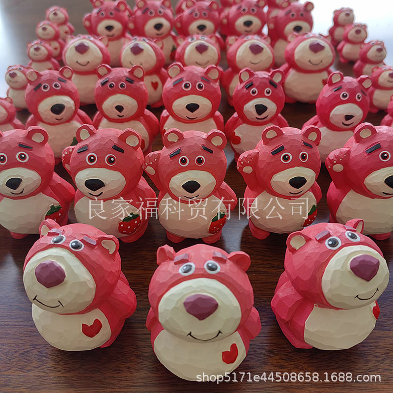 いちご熊純手作り実木彫刻置物木彫り根彫刻創意かわいい風愛熊ファッション小プレゼント