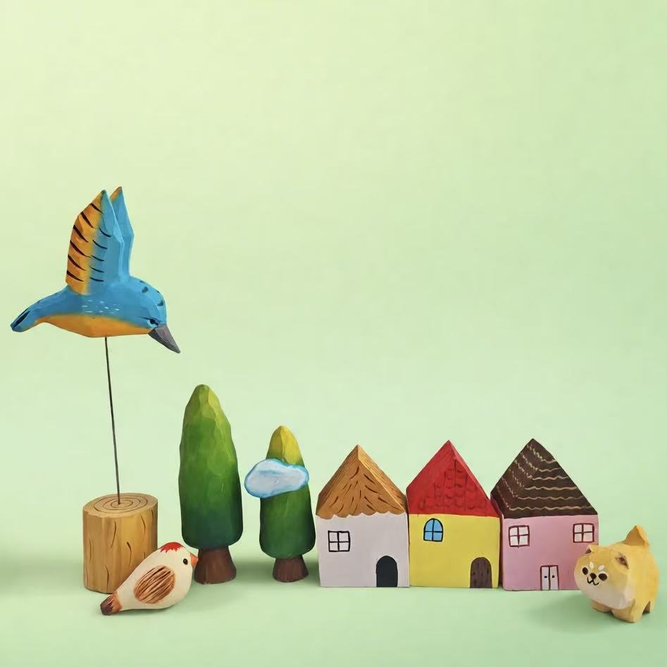 木雕小房子小树小木屋手工雕刻治愈系摆件随意搭配地摊夜市文旅