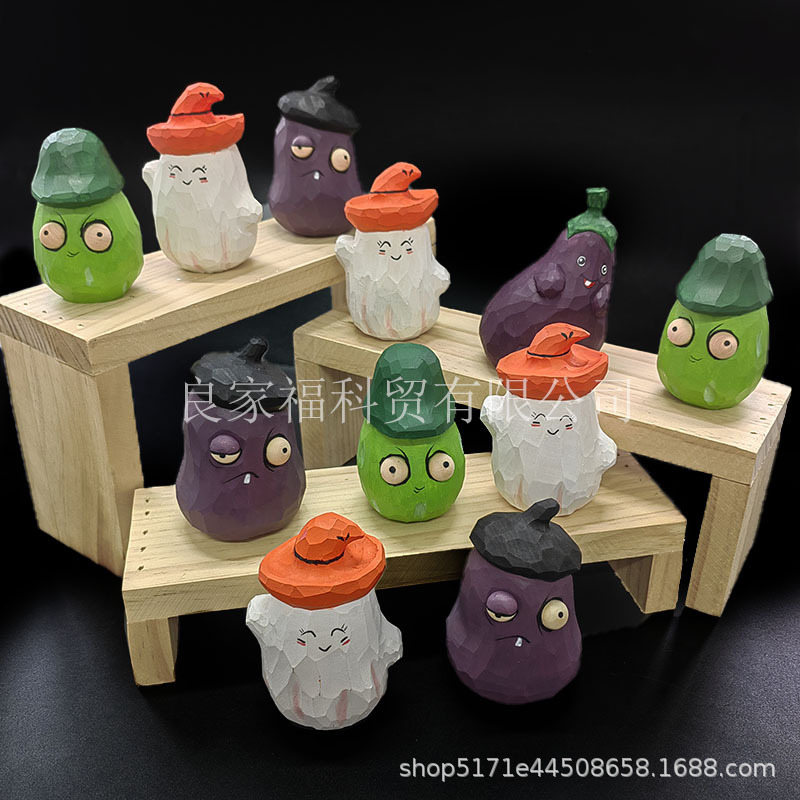 植物とゾンビの戦い 木彫り 手作り無垢材彫刻 クリエイティブな家の装飾 デスクトップ飾り 友人へのホリデーギフト
