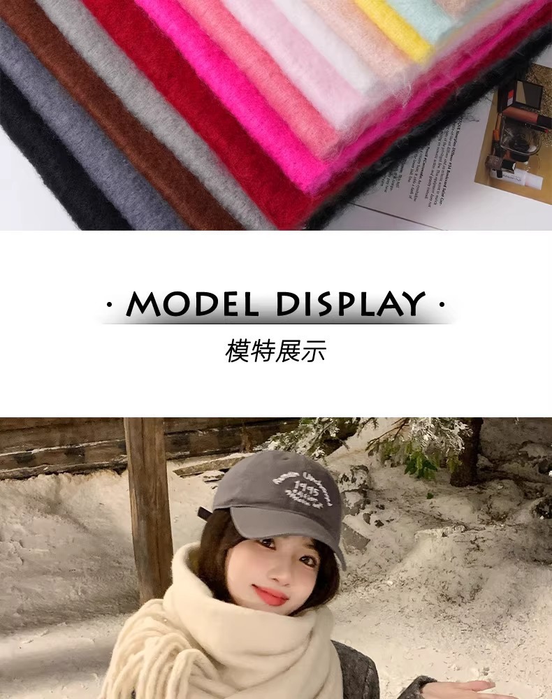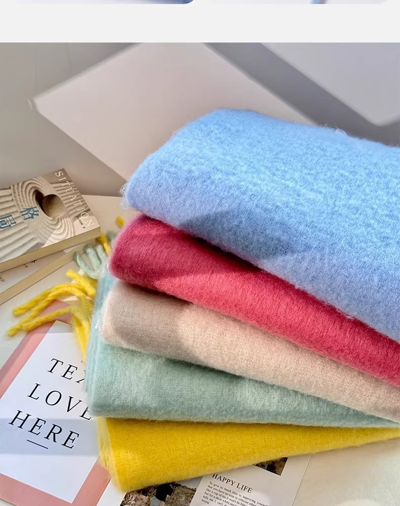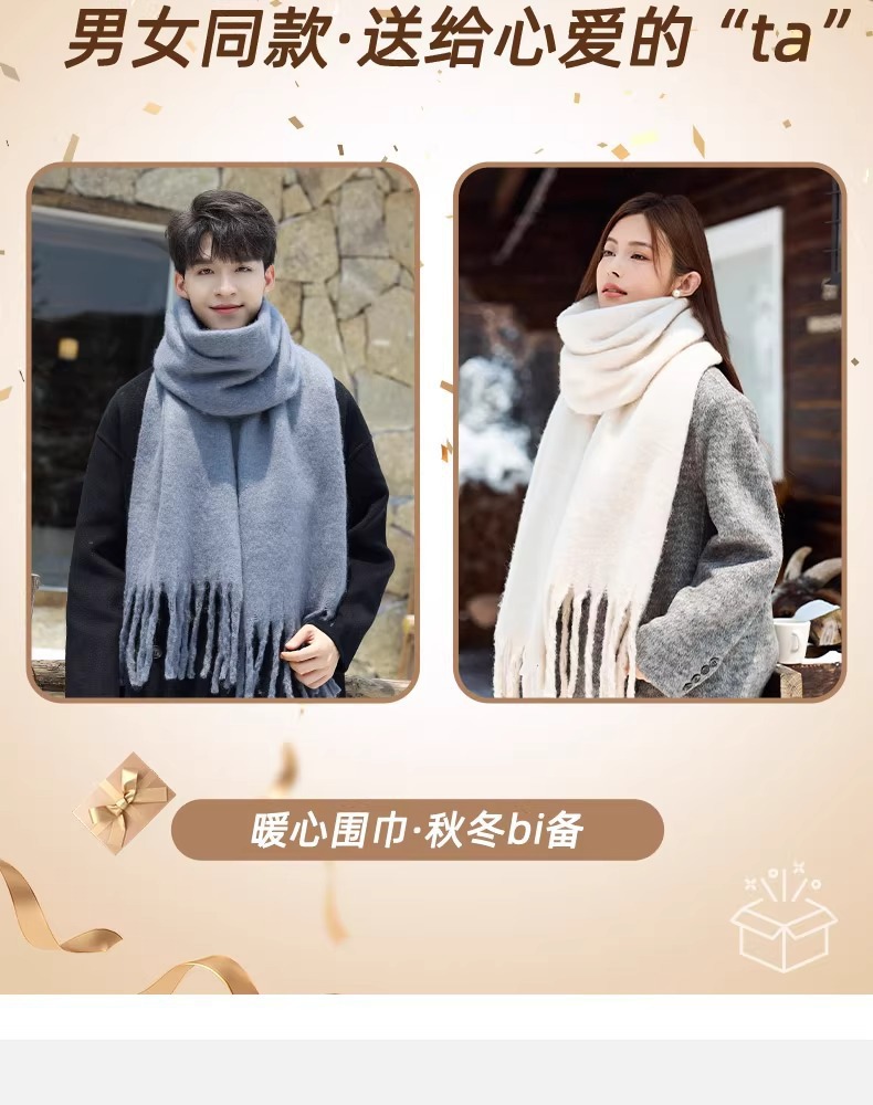 马海毛纯色围巾女冬季氛围感长款保暖加厚仿羊绒围脖披肩情侣百搭