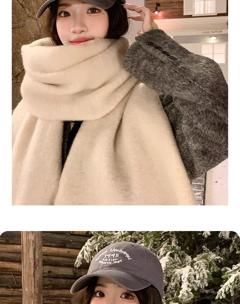 纯色加厚大围巾女士冬天学生百搭披肩高级感加长保暖情侣围脖批发