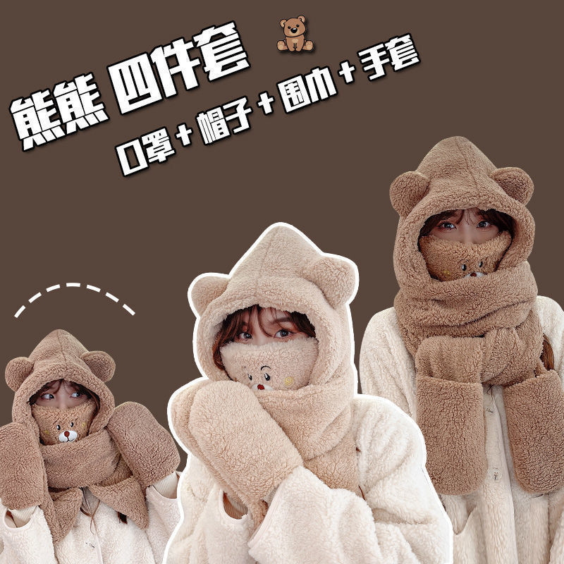 熊が耳をかばう帽子の子供は秋冬かわいい冬のぬいぐるみのマフラーと帽子が一体になっています。