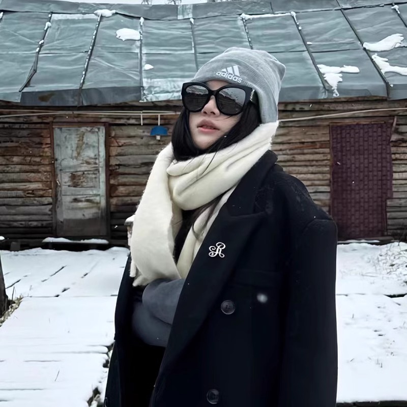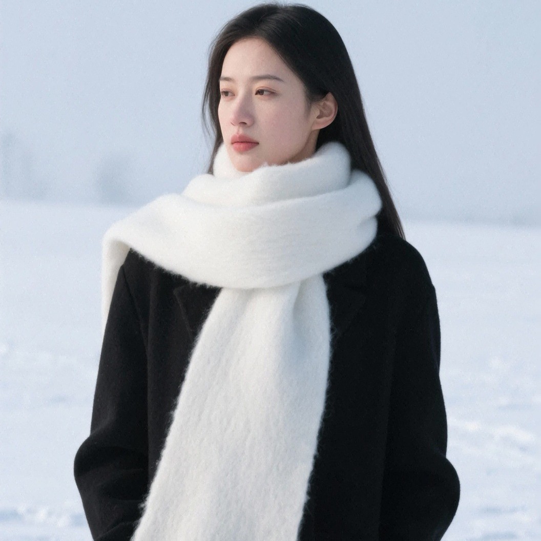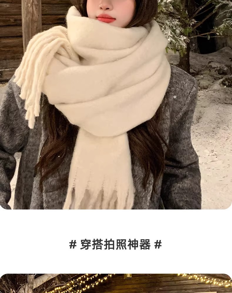 纯色加厚大围巾女士2025秋冬季新款韩版冬天学生百搭披肩围脖白色