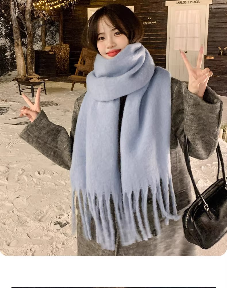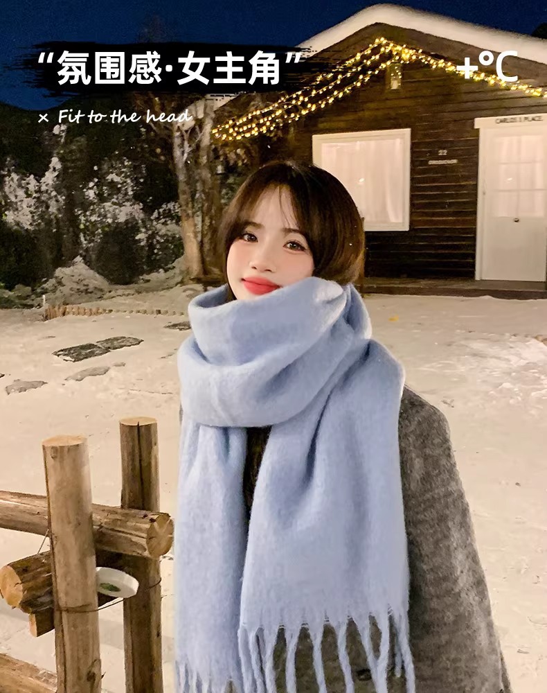 2025新款蓝色围巾冬天学生情侣男女款流苏披肩加厚白色保暖围脖潮