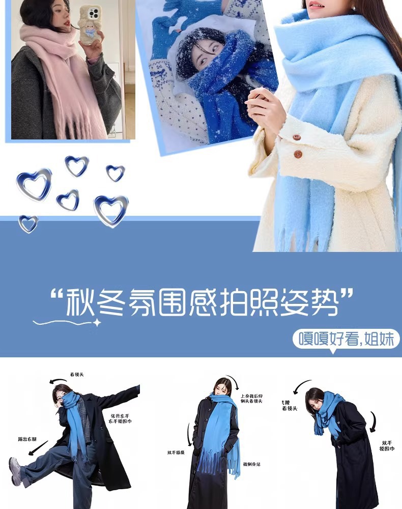 颜色 马海毛纯色小版白色,马海毛纯色 小版粉色,马海毛纯色小版雾霾蓝,马海毛纯色小版宝蓝,马海毛纯色小版黑色,马海毛纯色小版大红,马海毛纯色小版紫色,马海毛纯色-大版白色,马海毛纯色-大版雾霾蓝,马海毛纯色-大版蓝绿,马海毛纯色围巾-大红,马海毛纯色-大版紫色,马海毛纯色-大版宝蓝,虞书欣同款小版黑色,虞书欣同款小版蓝色,虞书欣同款小版粉色,虞书欣同款大版黑色,虞书欣同款大版粉色,虞书欣同款大版蓝色,条纹卡其,小板卡其条纹,千鸟格流苏黑白色,千鸟格流苏卡其色,千鸟格流苏灰白色,圣诞格【绿色】,圣诞格【红色】,小板圣诞围巾,小版爱心围巾-卡其,小版爱心围巾-黑白,小版爱心围巾粉色,美拉德围巾,奶油围巾,大版爱心围巾 卡其色,大版爱心围巾 黑色,大版爱心围巾 粉色,小红帽,海盐蓝,初雪日记,安可拉红