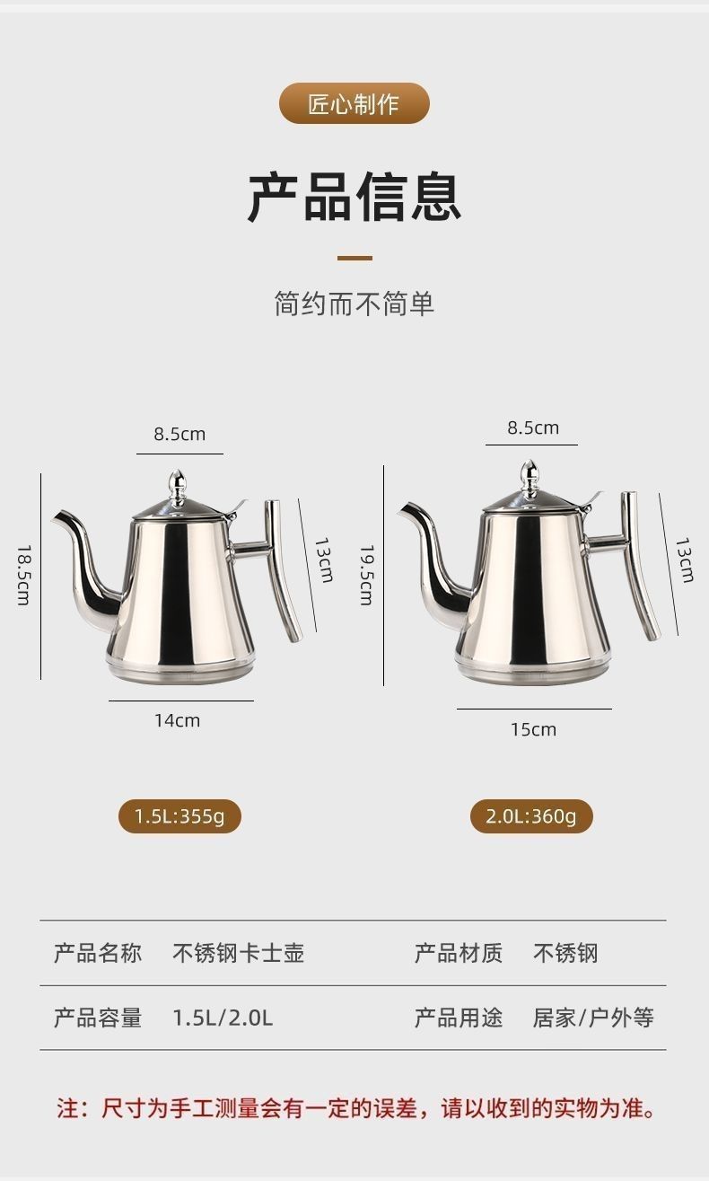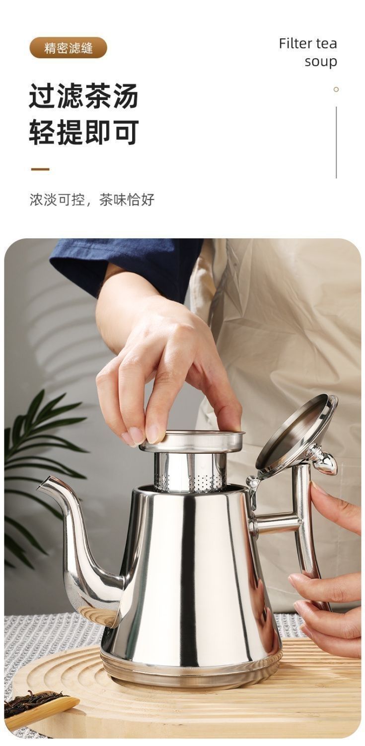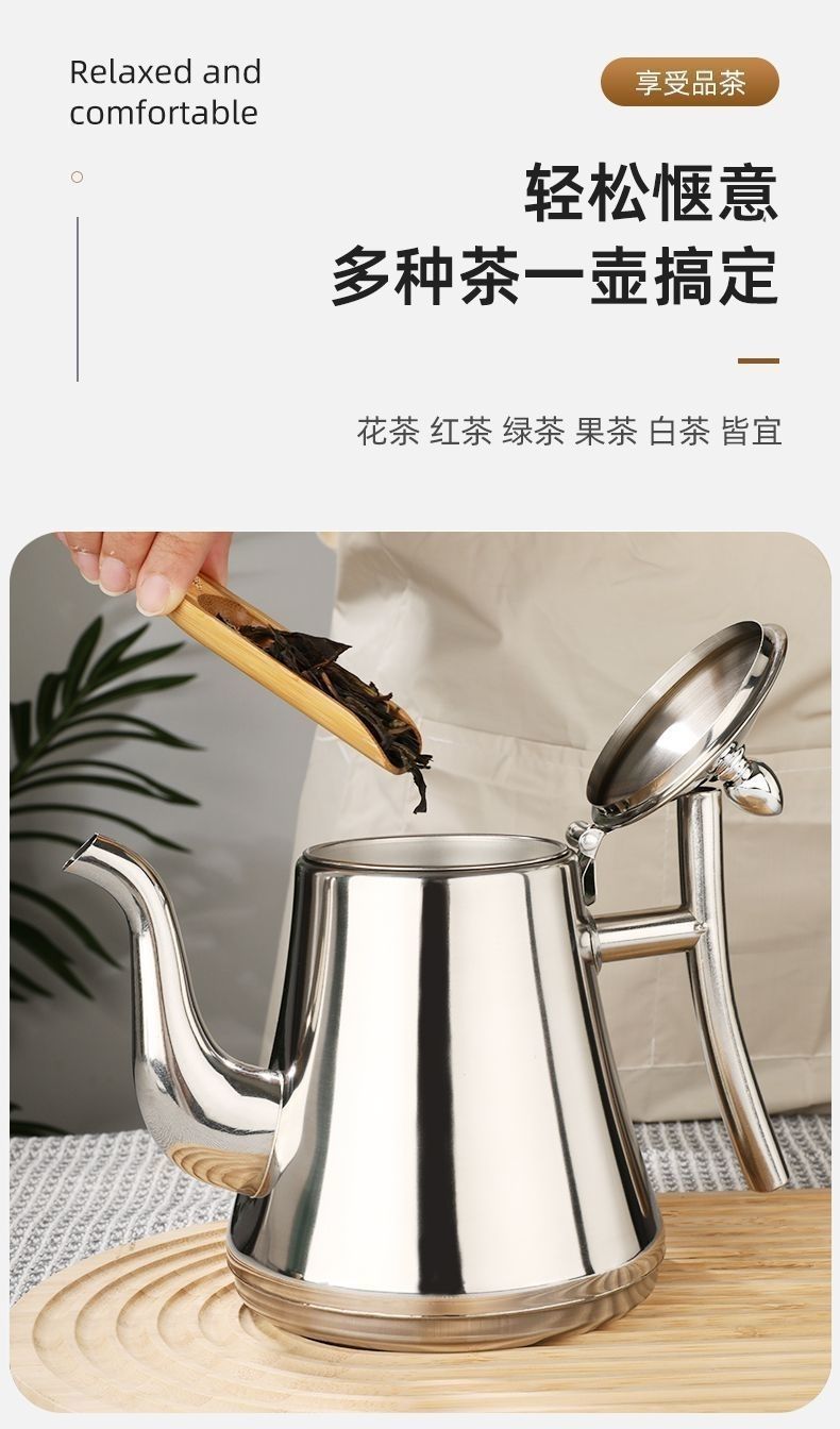不锈钢茶壶带滤网餐厅饭店水壶电磁炉通用烧水壶家用泡茶壶花茶壶