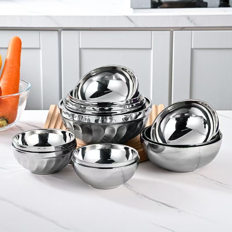 ステンレス鋼二重層断熱ボウル、家庭用学校食堂スープボウル、ヌードルボウル、子供用栄養補助食品火傷防止ボウル、厚みのあるプラチナボウル