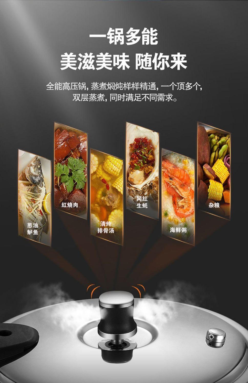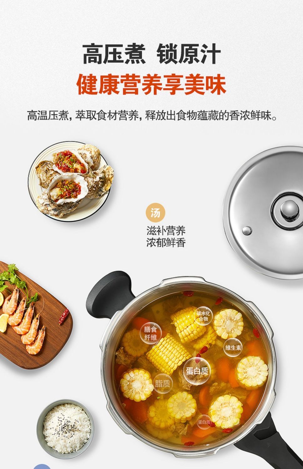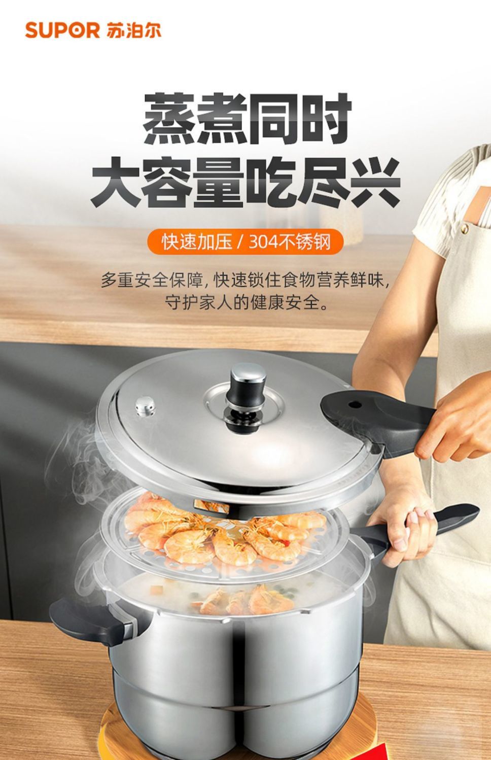 苏泊尔压力锅304不锈钢家用燃气电磁炉通用加厚安全防爆高压锅