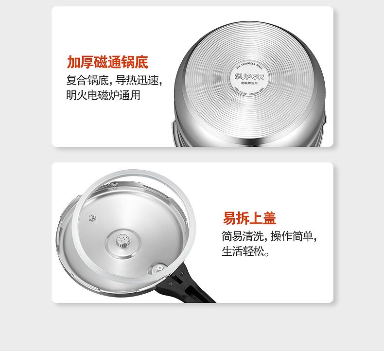 Supor 304 ステンレス鋼圧力鍋 Yueti 家庭用ガス電磁調理器ユニバーサル YW223BA2/BB2/EY22