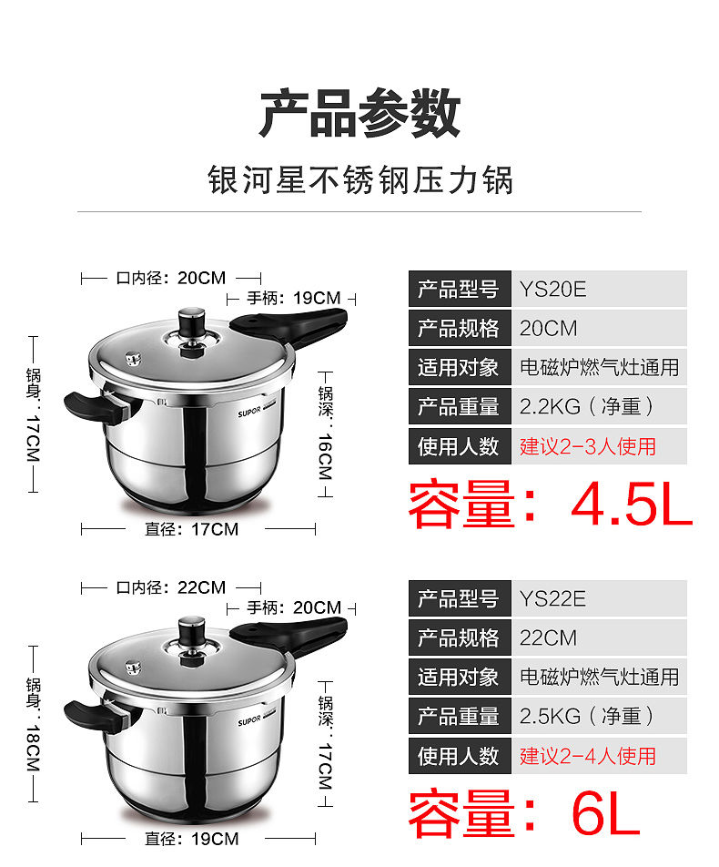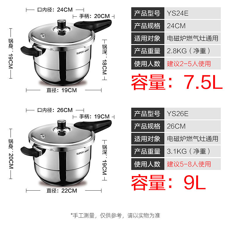 Supor Galaxy Star 圧力鍋 304 ステンレス鋼圧力鍋圧力 YS24E/20E/22E/YS26E 防爆
