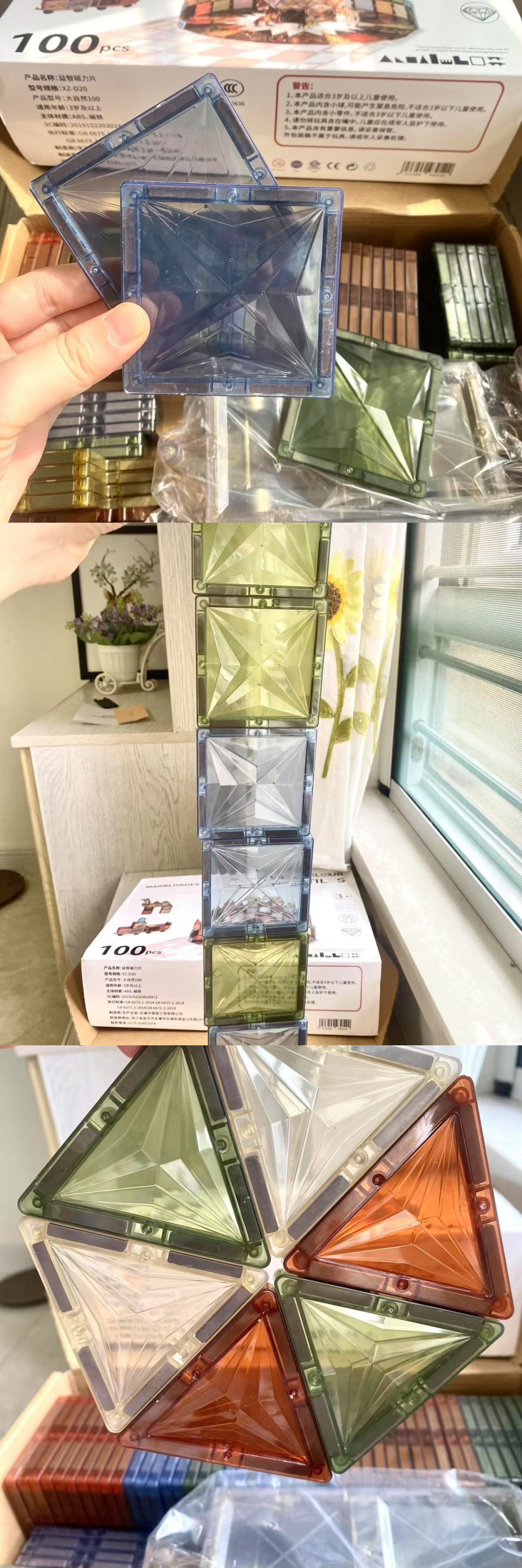 国境を越えた人気の自然ダイヤモンドカラーウィンドウ磁気ピース子供の教育用立体組み立てエンジニアリングビルディングブロックおもちゃ卸売