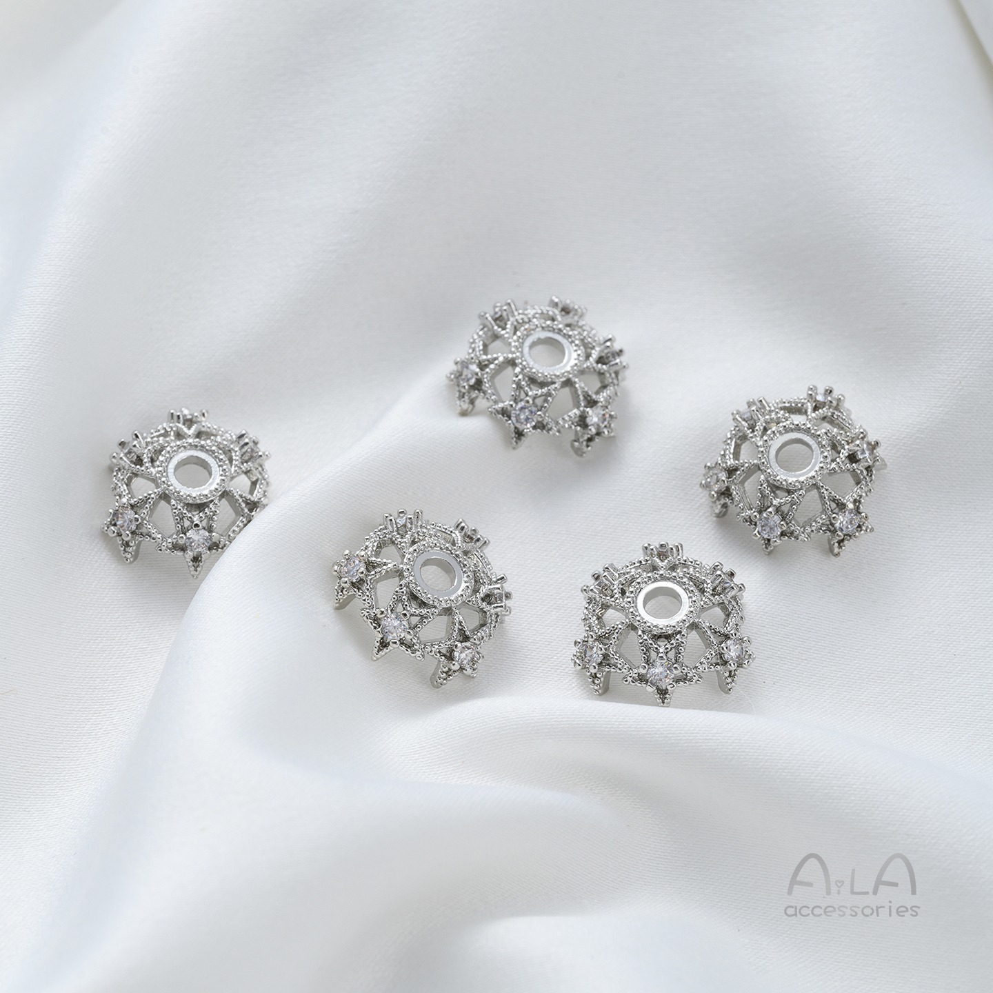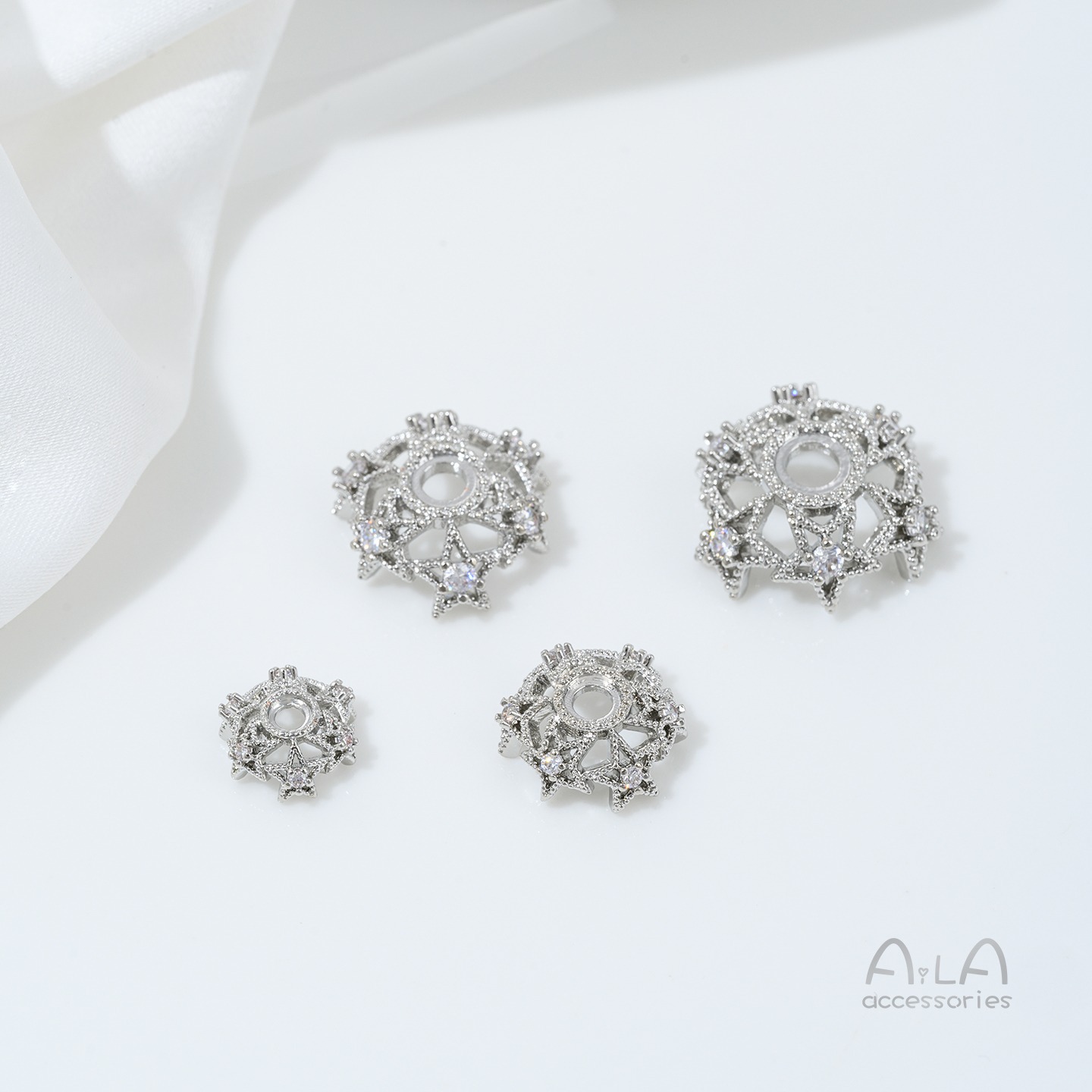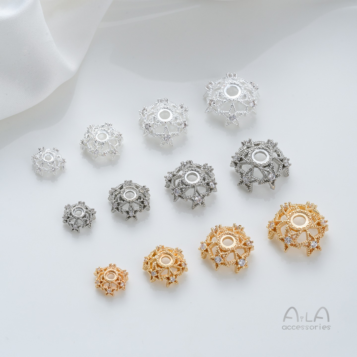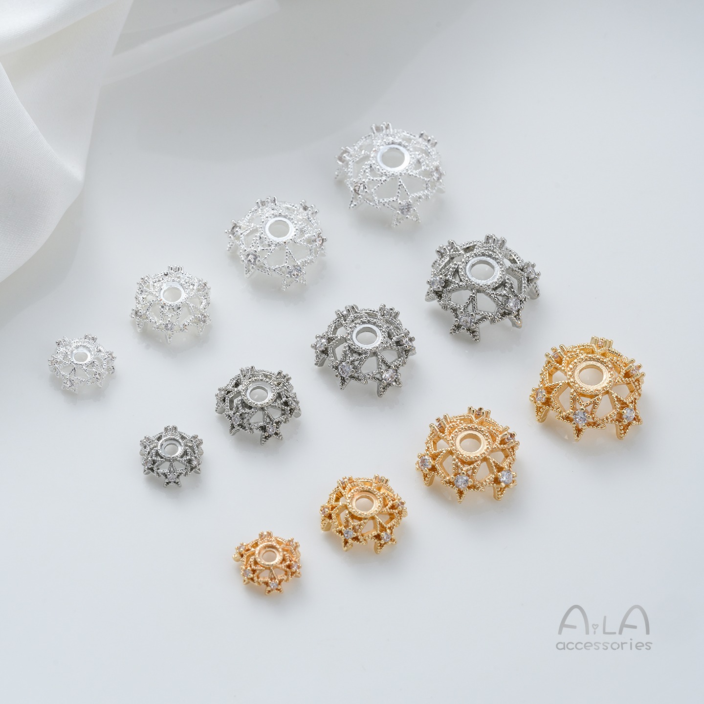 強保色14k包金メッキ厚銀入れジルコン雪花托ビーズ片diy手作真珠ブレスレットアクセサリー部品