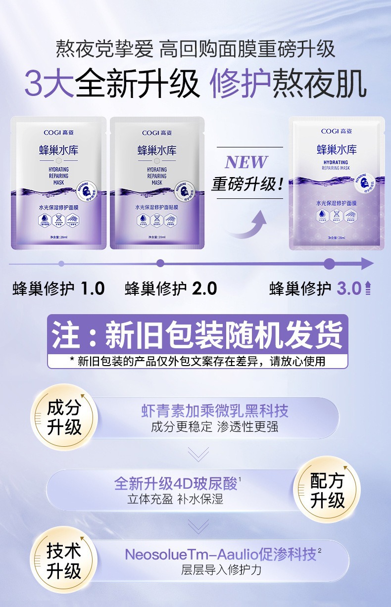 高姿面膜男女蜂巢补水保湿舒缓积雪草修护熬夜肌修护补水官方正品