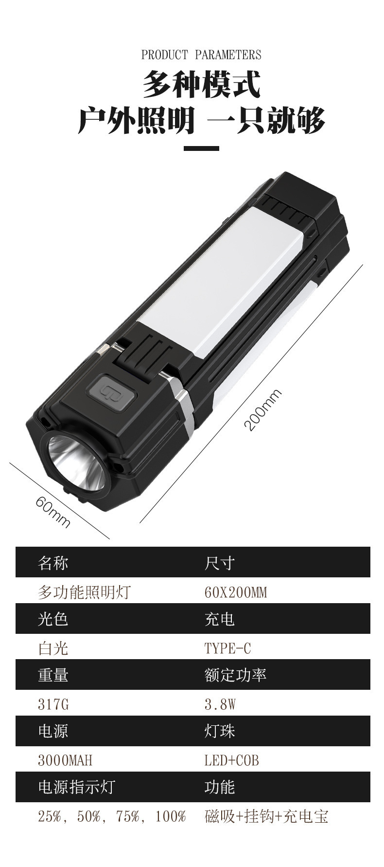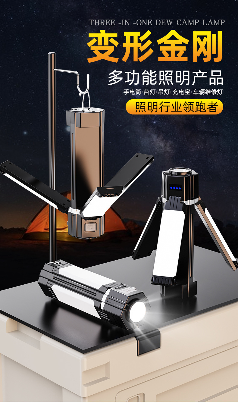 クロスボーダー Amazon 多機能懐中電灯トランスフォーマー USB 充電式緊急照明街路灯キャンプライト