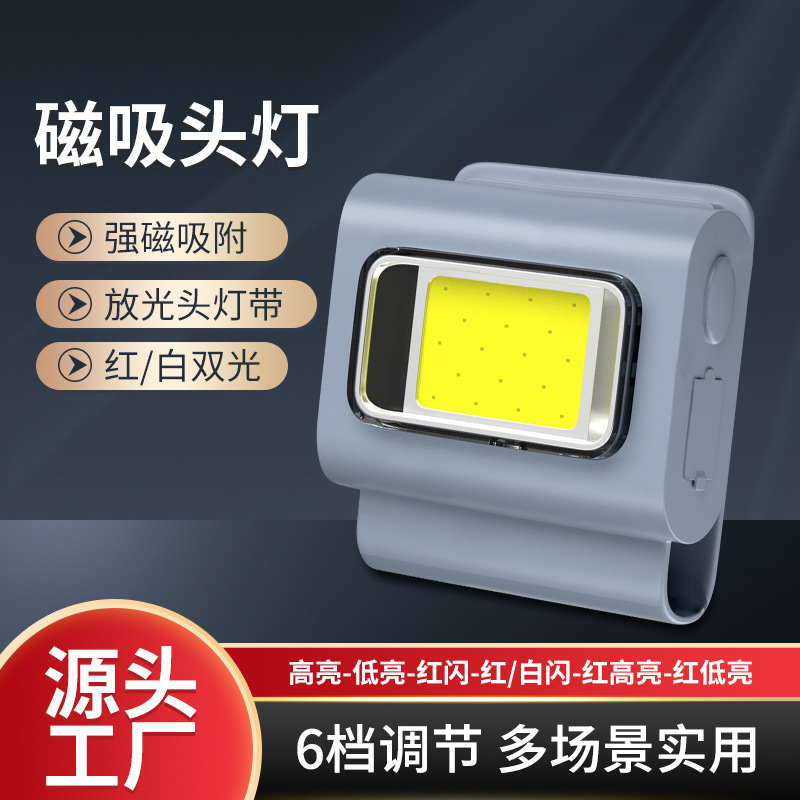 多用途磁気ナイトフィッシング充電式ヘッドライト、ポータブルクリップランニングCOBシリコン作業灯