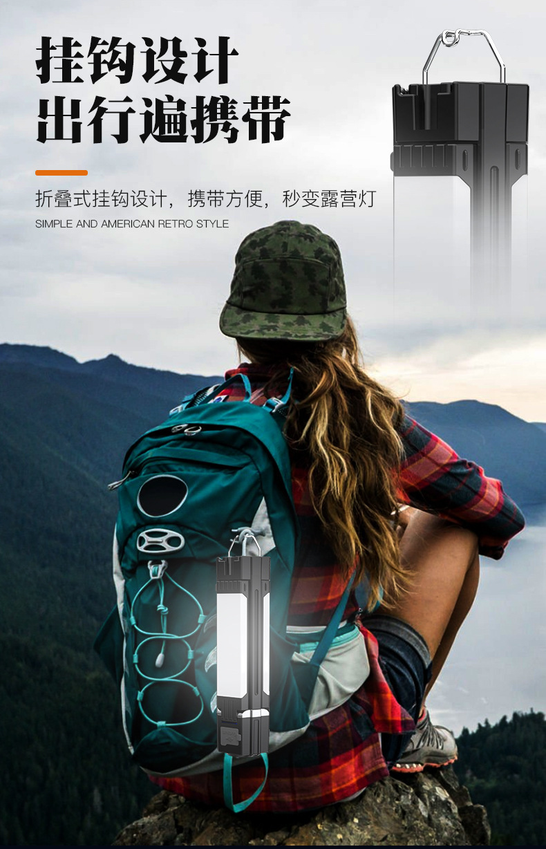 跨境新款工作照明灯户外多功能折叠露营挂钩帐篷灯营地