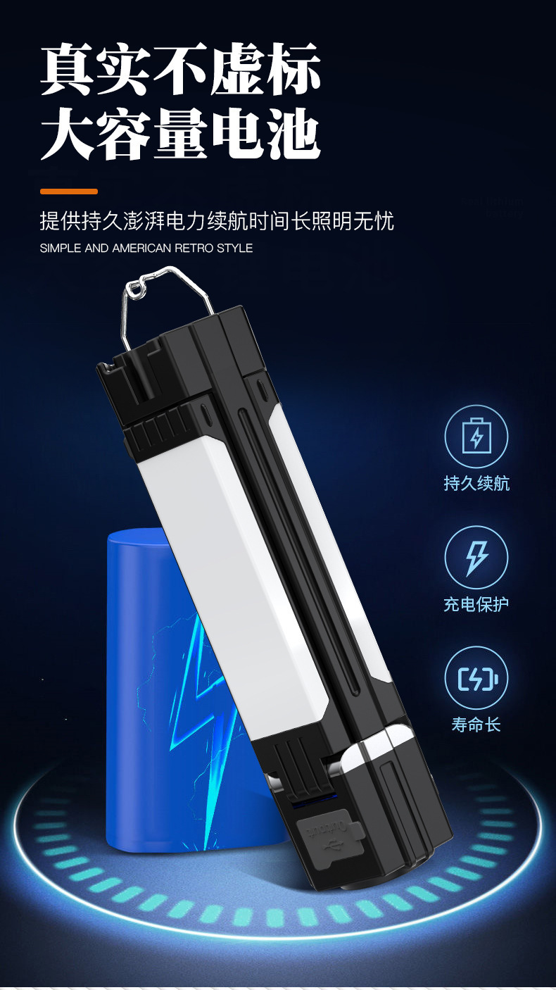 特許メーカーのキャンプ用ランプ懐中電灯折り畳みランプ充電宝多機能高亮長航続USB緊急