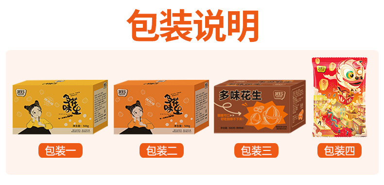 包装规格 散装5包,散装10包,多味花生200g,【约20包】多味花生500g,【约40包】多味花生1000g