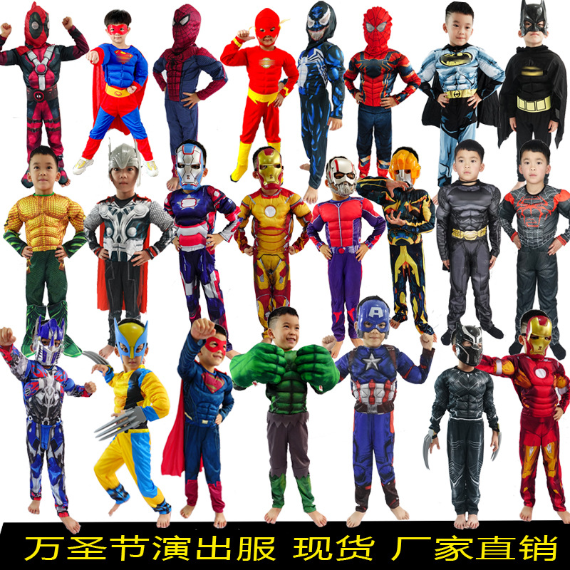万圣节复仇者联盟儿童肌肉美国队长蜘蛛侠钢铁侠超人绿巨人服装