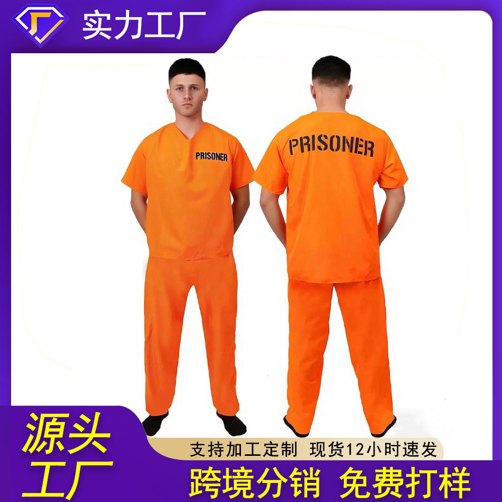 万圣节成人男款女款橙色囚服cosplay囚犯跨境服装角色扮演服饰舞