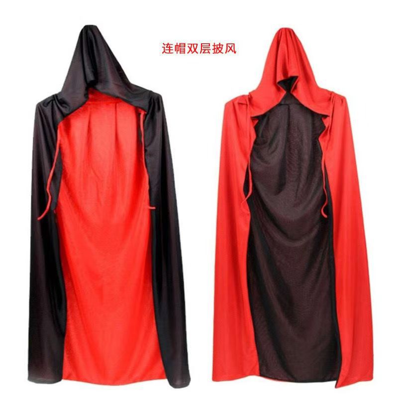 ハロウィーン吸血鬼赤黒マント子供大人化粧衣装道具コスプレ死神立ち襟マント