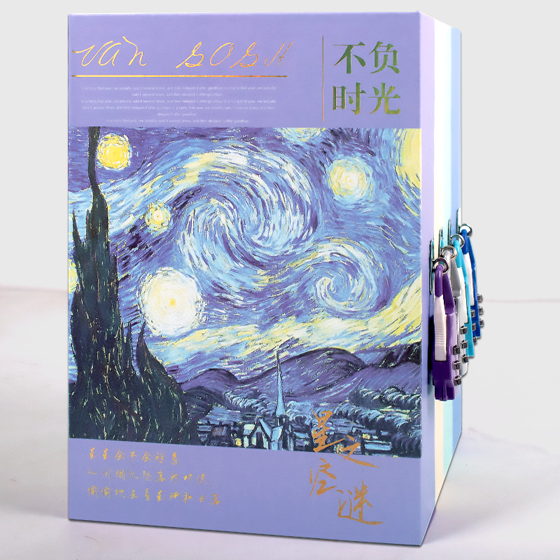 油絵シリーズの手帳ノートゴッホの画記本錠付き暗証番号本小学生日記本小清新
